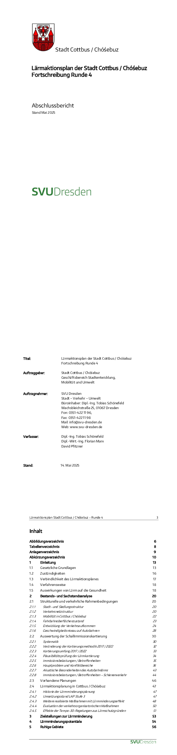 Entwurf: Lärmaktionsplan der Stadt Cottbus-Chóśebuz Fortschreibung Runde 4