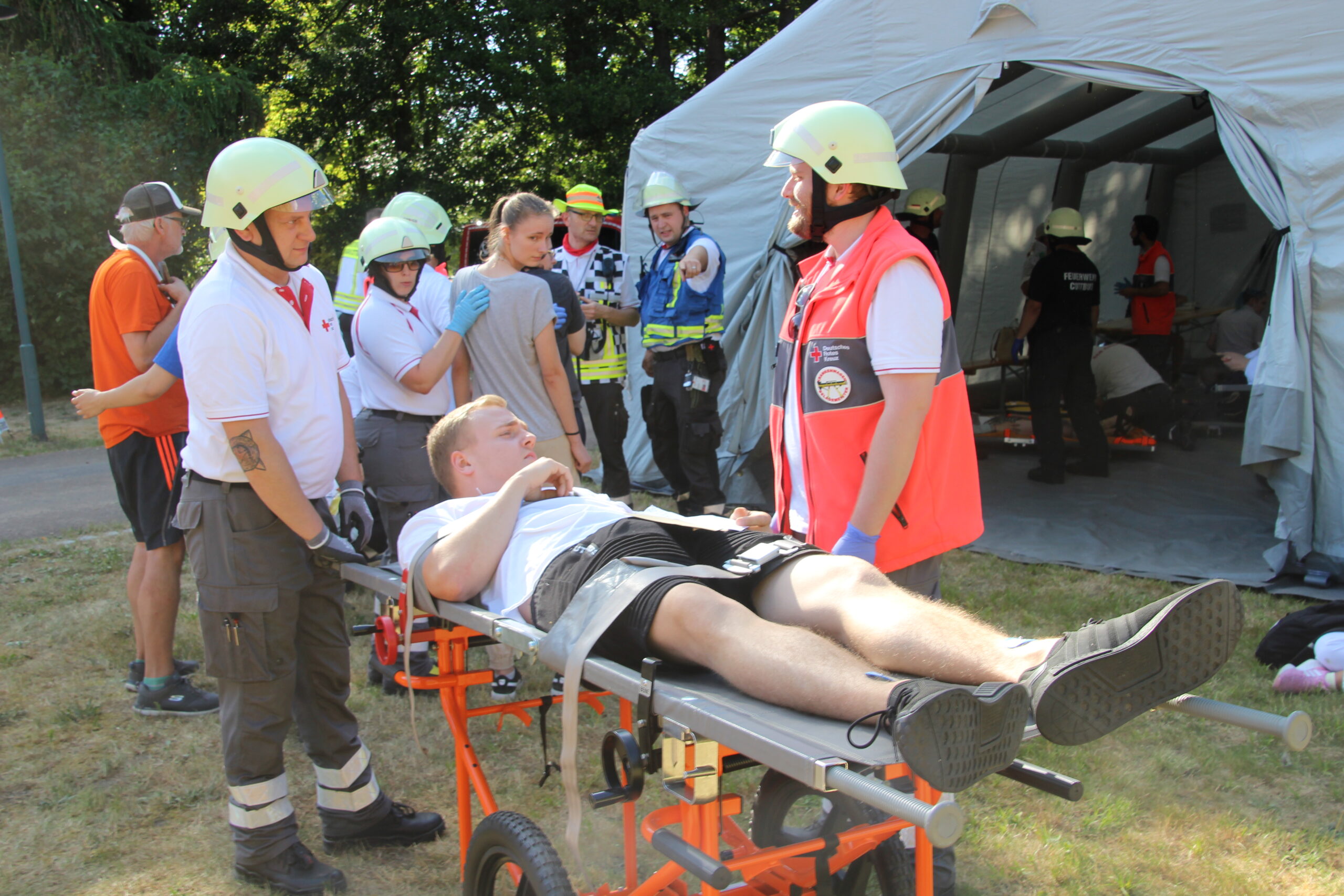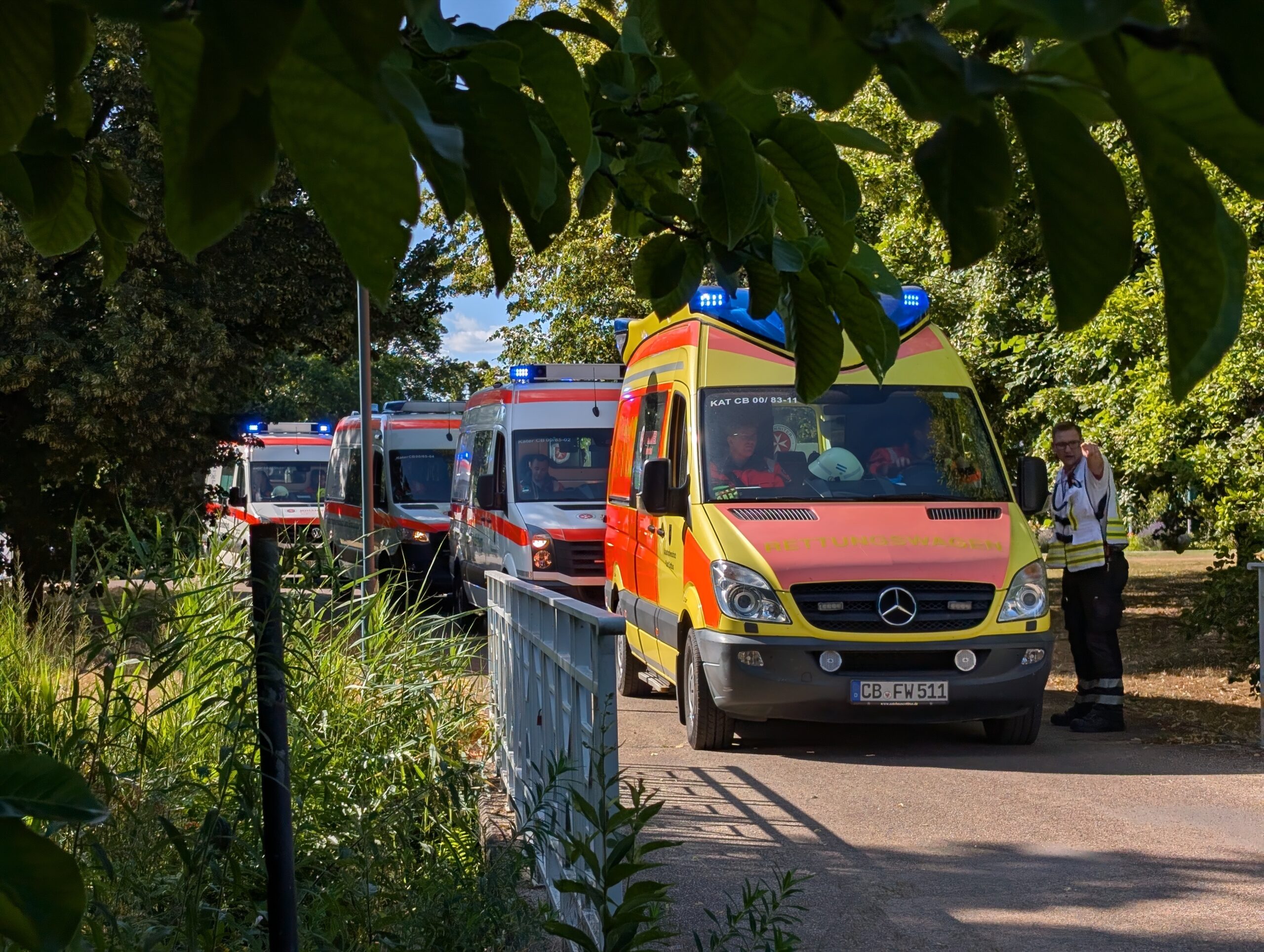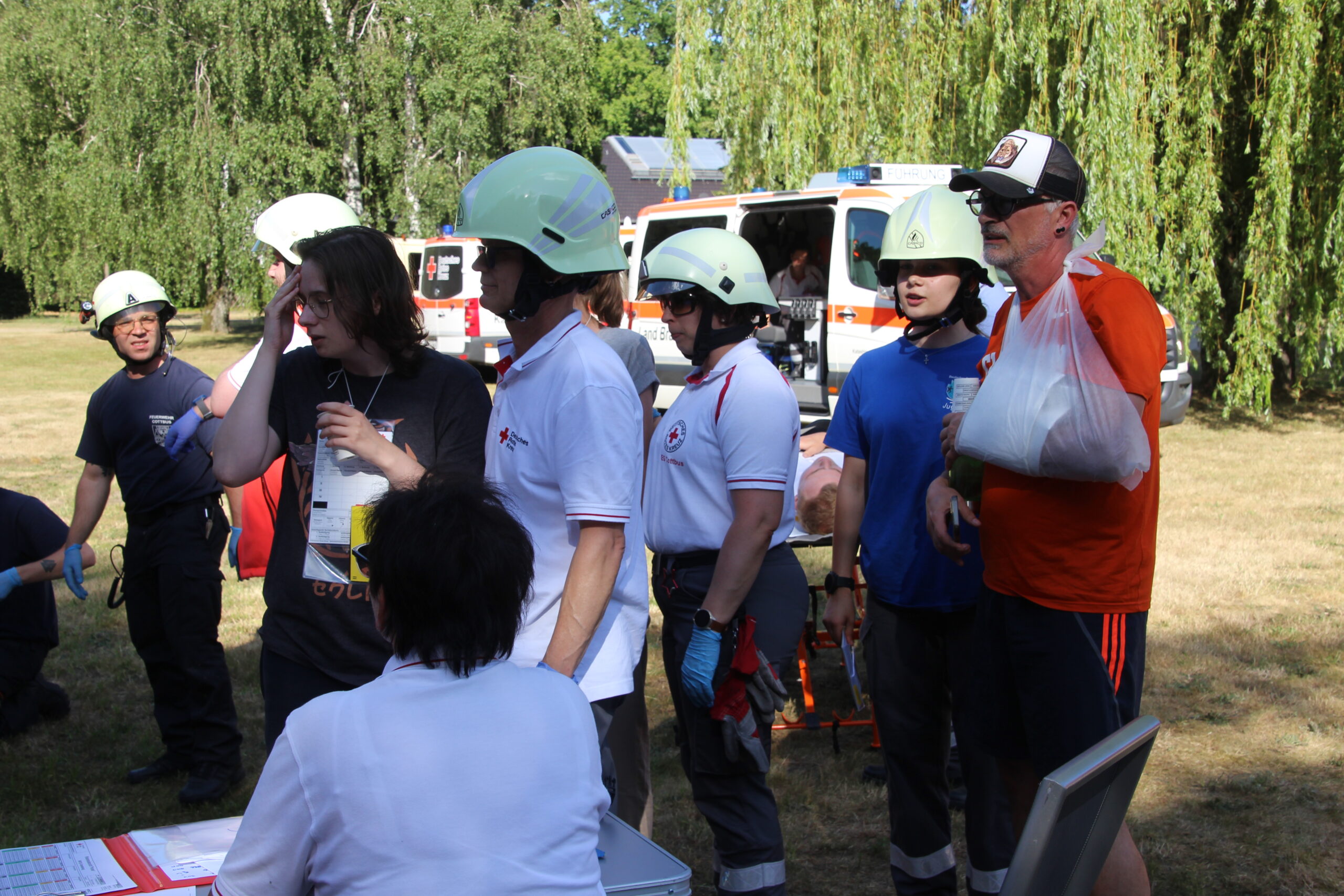 Im Cottbus Spreeauenpark ist am Freitag, 04.07.2025, ein umfangreiches Katastrophenschutz-Szenario abgearbeitet worden. Hunderte Einsatzkräfte hatten 93 „verletzte“ Personen zu sichten, zu versorgen sowie in die Medizinische Universität – Carl Thiem (MUL – CT) zu transportieren. Insgesamt waren ca. 500 Beteiligte als Mimen oder Rettungs- bzw. Unterstützungskräfte im Einsatz.