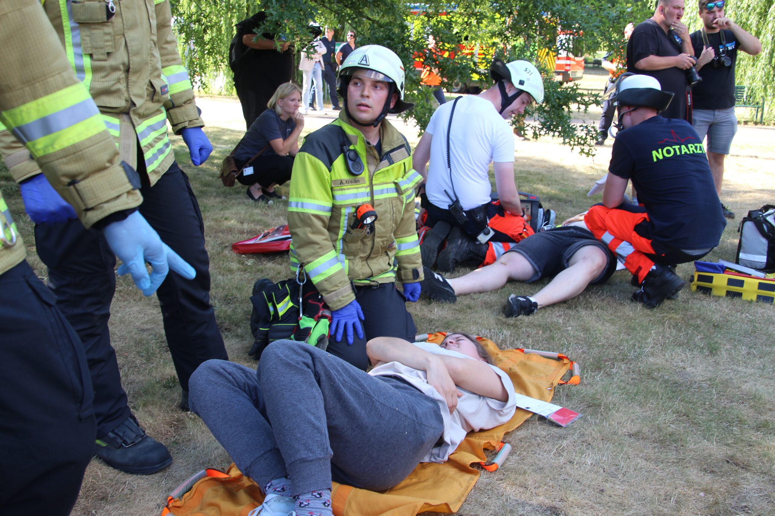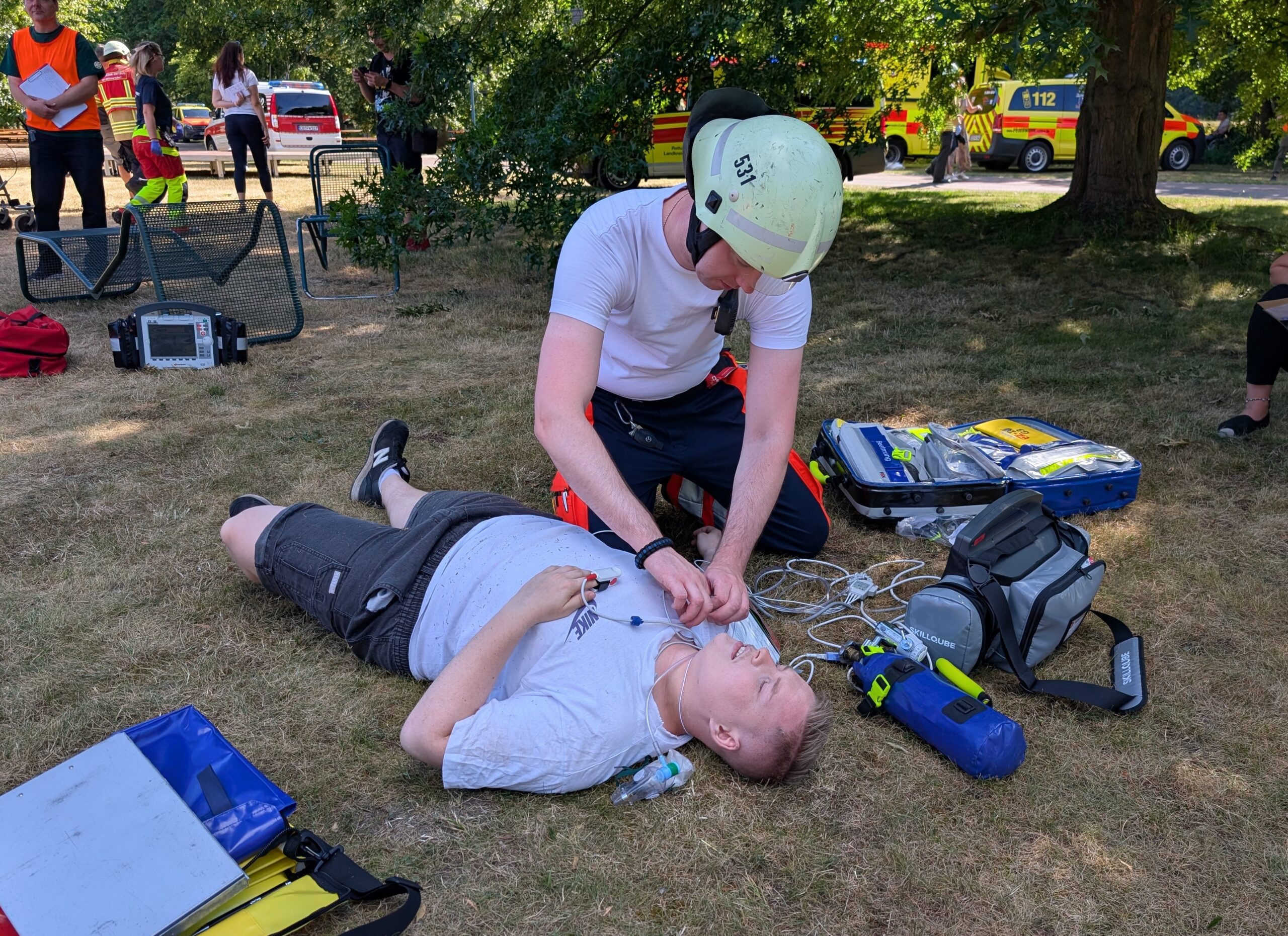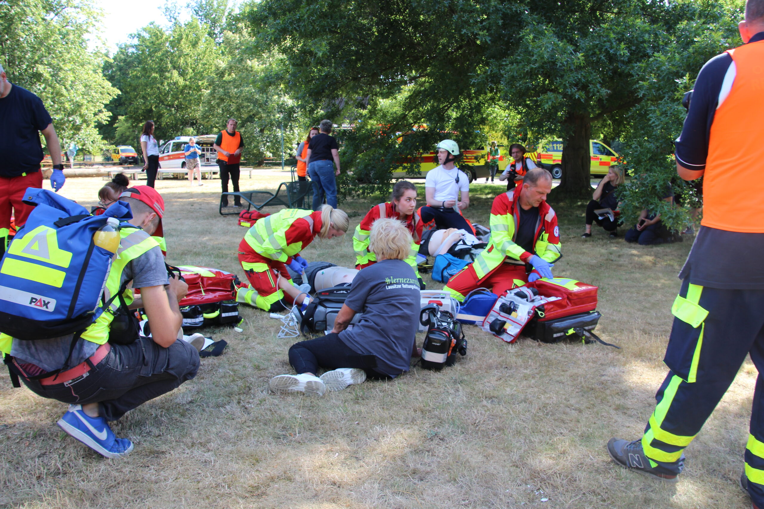 Im Cottbus Spreeauenpark ist am Freitag, 04.07.2025, ein umfangreiches Katastrophenschutz-Szenario abgearbeitet worden. Hunderte Einsatzkräfte hatten 93 „verletzte“ Personen zu sichten, zu versorgen sowie in die Medizinische Universität – Carl Thiem (MUL – CT) zu transportieren. Insgesamt waren ca. 500 Beteiligte als Mimen oder Rettungs- bzw. Unterstützungskräfte im Einsatz.