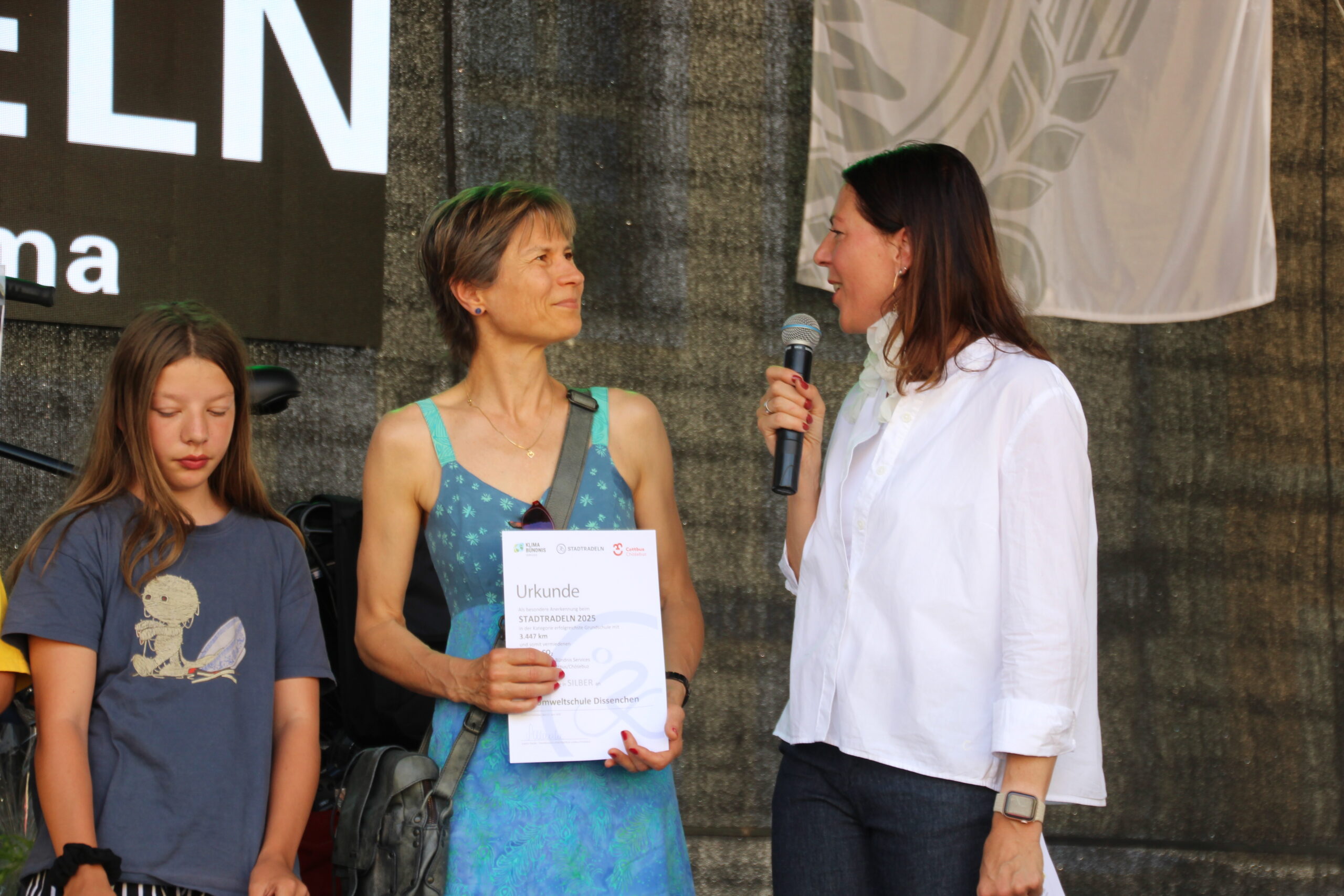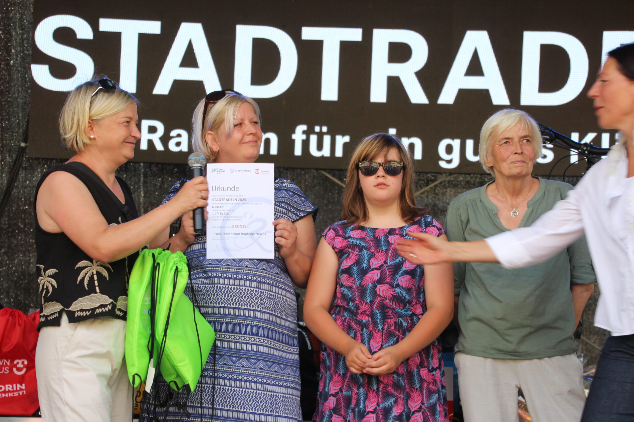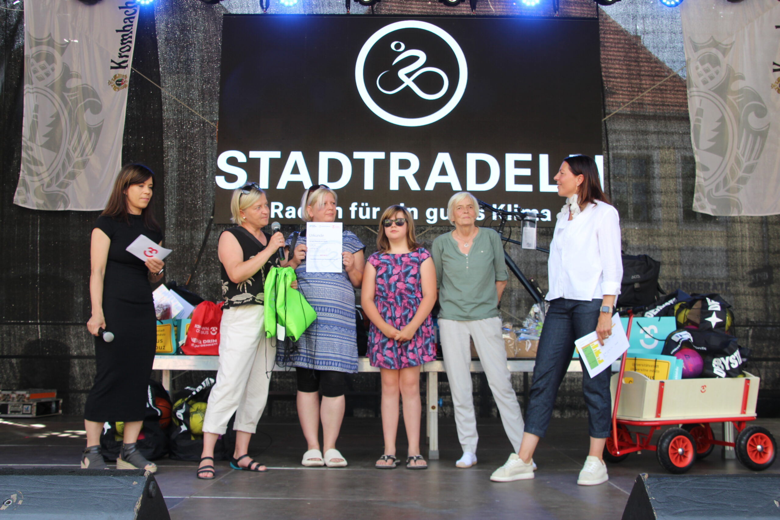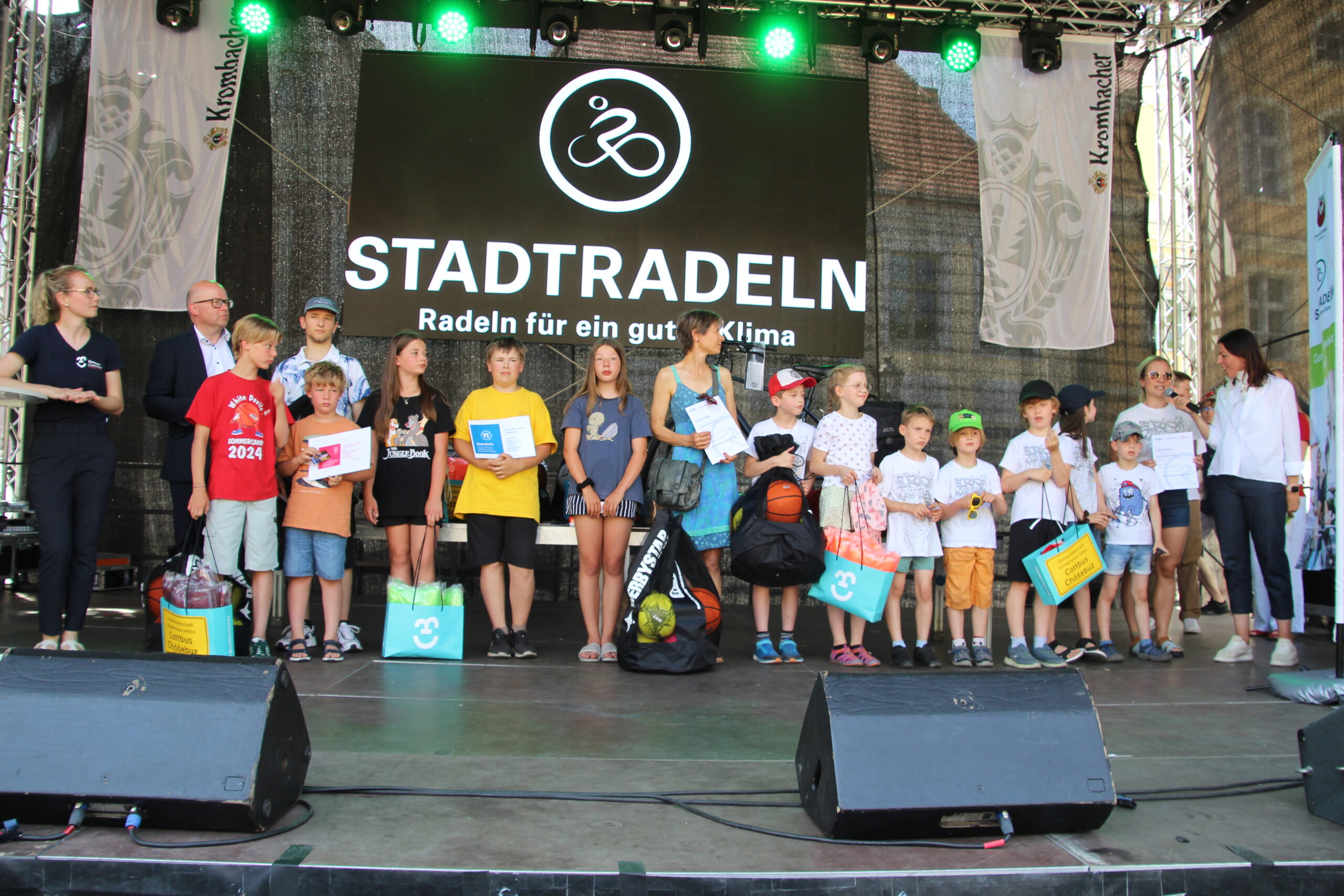 Am Sonntag, 22.06.2025, sind die erfolgreichsten Teams und Radelnde sowie die glücklichen Losgewinner im Rahmen einer feierlichen Preisverleihung auf dem Cottbuser Stadtfest auf der Bühne am Altmarkt von Bürgermeisterin Doreen Mohaupt ausgezeichnet worden.