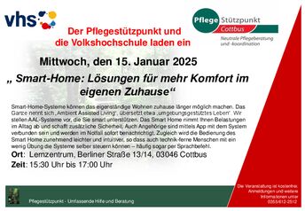 Für Senioren oder beeinträchtigte Menschen können Smart-Home-Systeme das eigenständige Wohnen zuhause erst oder wieder oder länger möglich machen. Das Ganze nennt sich „Ambient Assistent Living“ und heißt übersetzt so viel wie „umgebungsgestütztes Leben“. Bei der Veranstaltung werden AAL-Systeme vorgestellt, die sie im Alltag smart unterstützen.