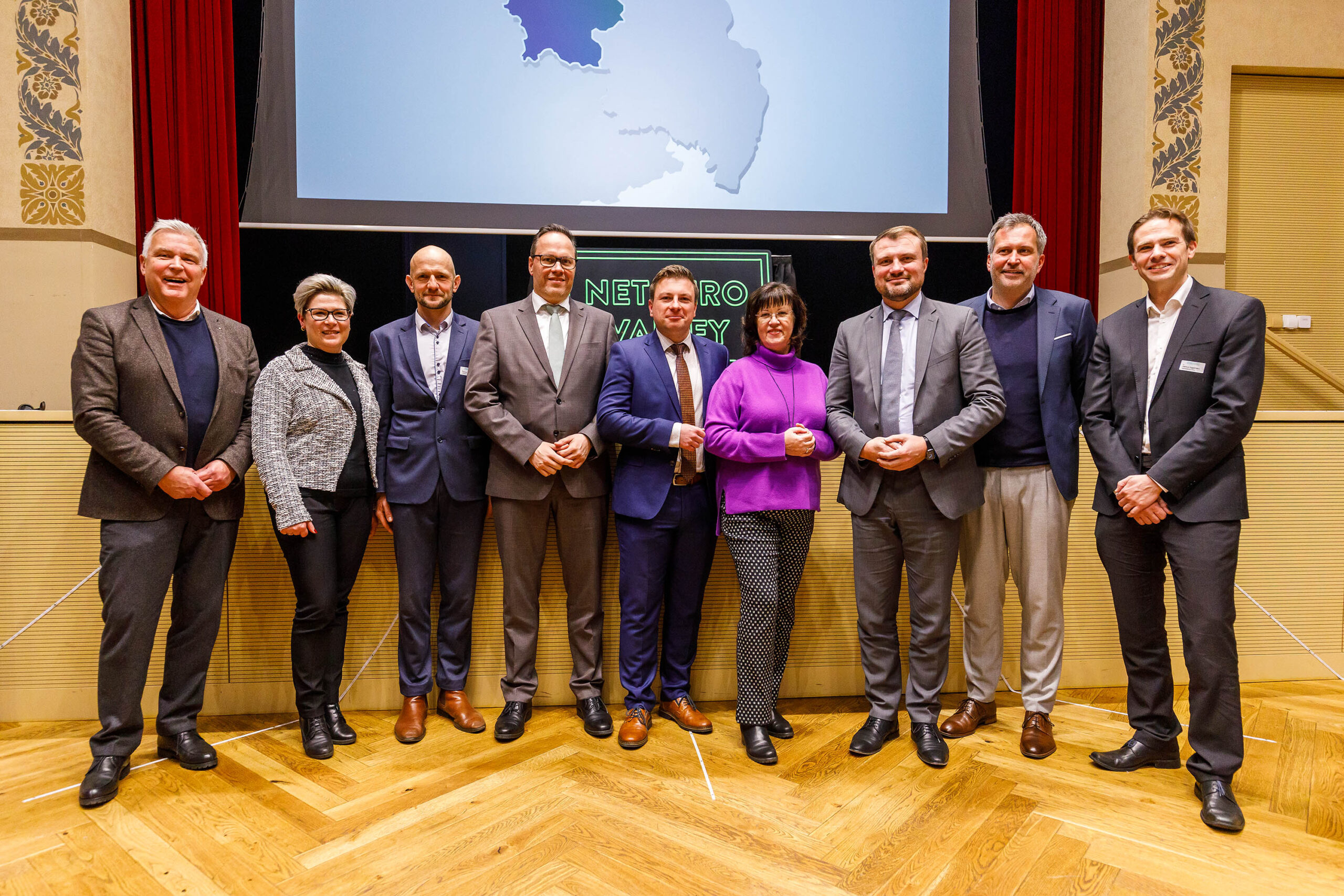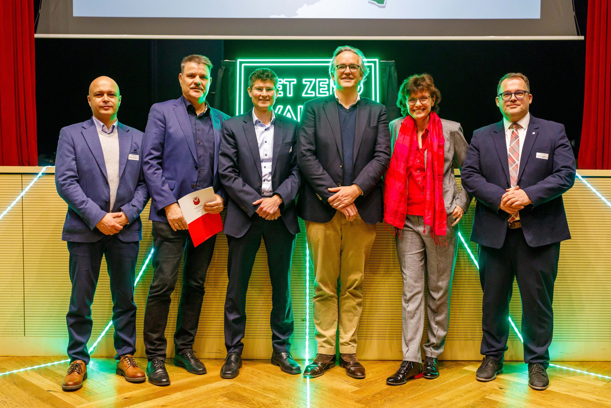 In Cottbus/Chóśebuz unterzeichneten heute die Wirtschaftsminister Brandenburgs und Sachsens, Daniel Keller und Dirk Panter, den Beschluss zur Ausweisung der Lausitz als europaweit erstes Net Zero Valley und übergaben den Beschluss stellvertretend für die mitwirkenden Akteure an den Oberbürgermeister der Stadt Cottbus/Chóśebuz, Tobias Schick und den Landrat des Landkreises Görlitz, Stephan Meyer.