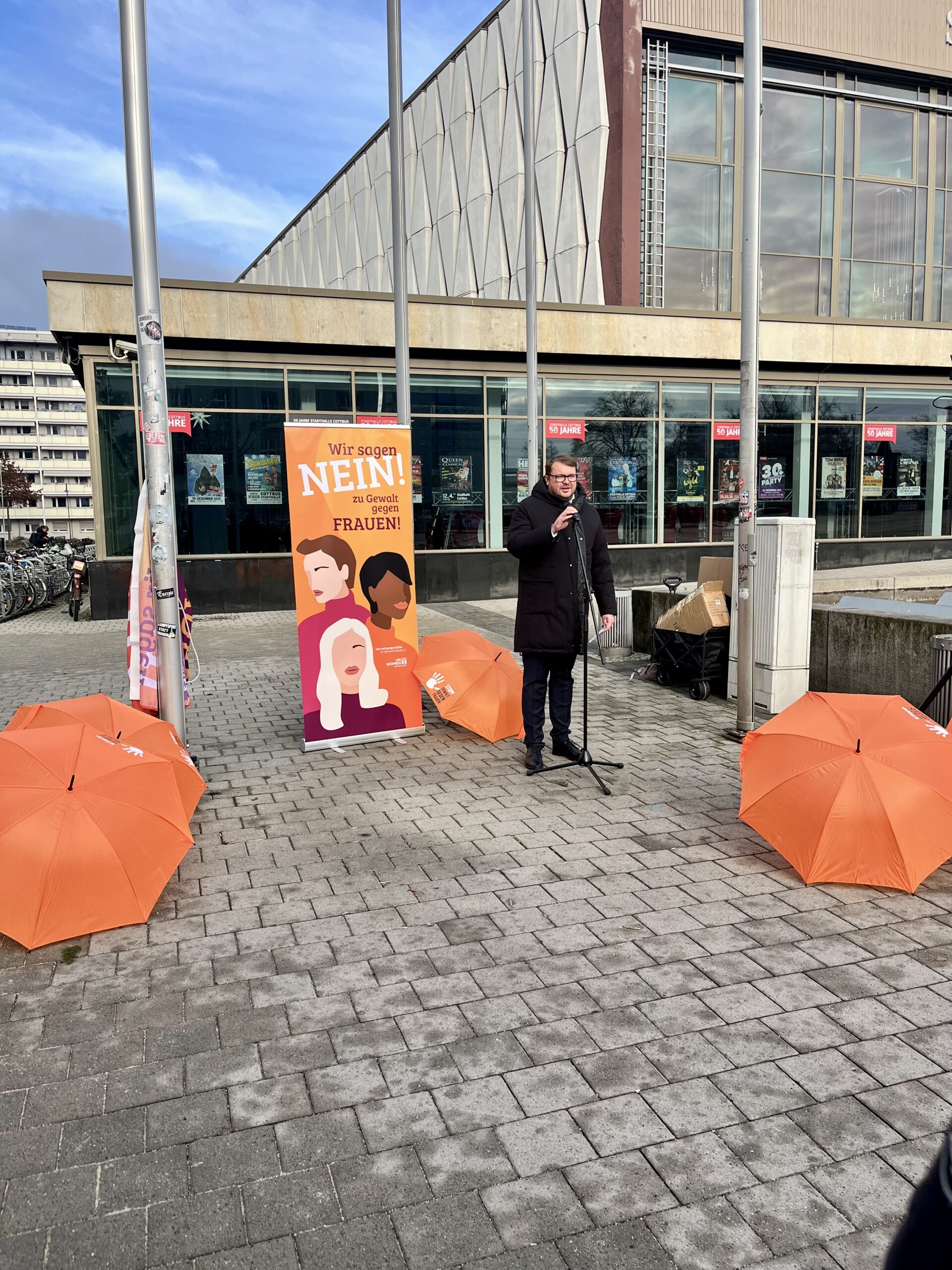 Am 25. November setzt die Stadt Cottbus/Chóśebuz ein sichtbares Zeichen gegen Gewalt an Frauen. Um 13:00 Uhr wird auf dem Stadthallenvorplatz die orangefarbene Fahne gehisst – gemeinsam mit Vertretungen der Stadtspitze und allen, die ein Zeichen der Solidarität setzen möchten.