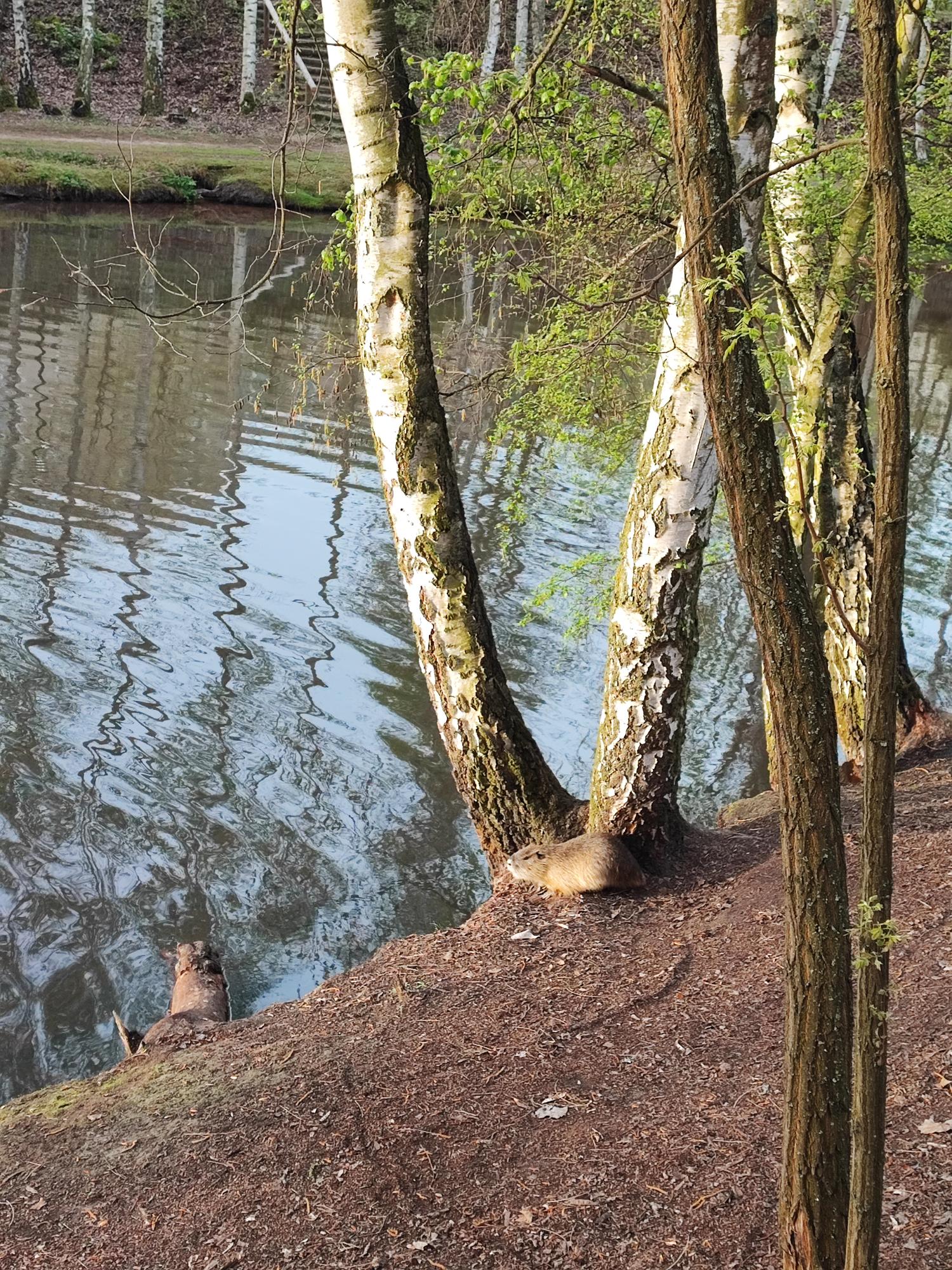 und 1 Birke gefällt werden. Die Bäume sind aufgrund von großflächigen Nageschäden durch Nutria im Stammfußbereich abgestorben. Dadurch ist die Stand- und Bruchsicherheit nicht mehr gegeben.
