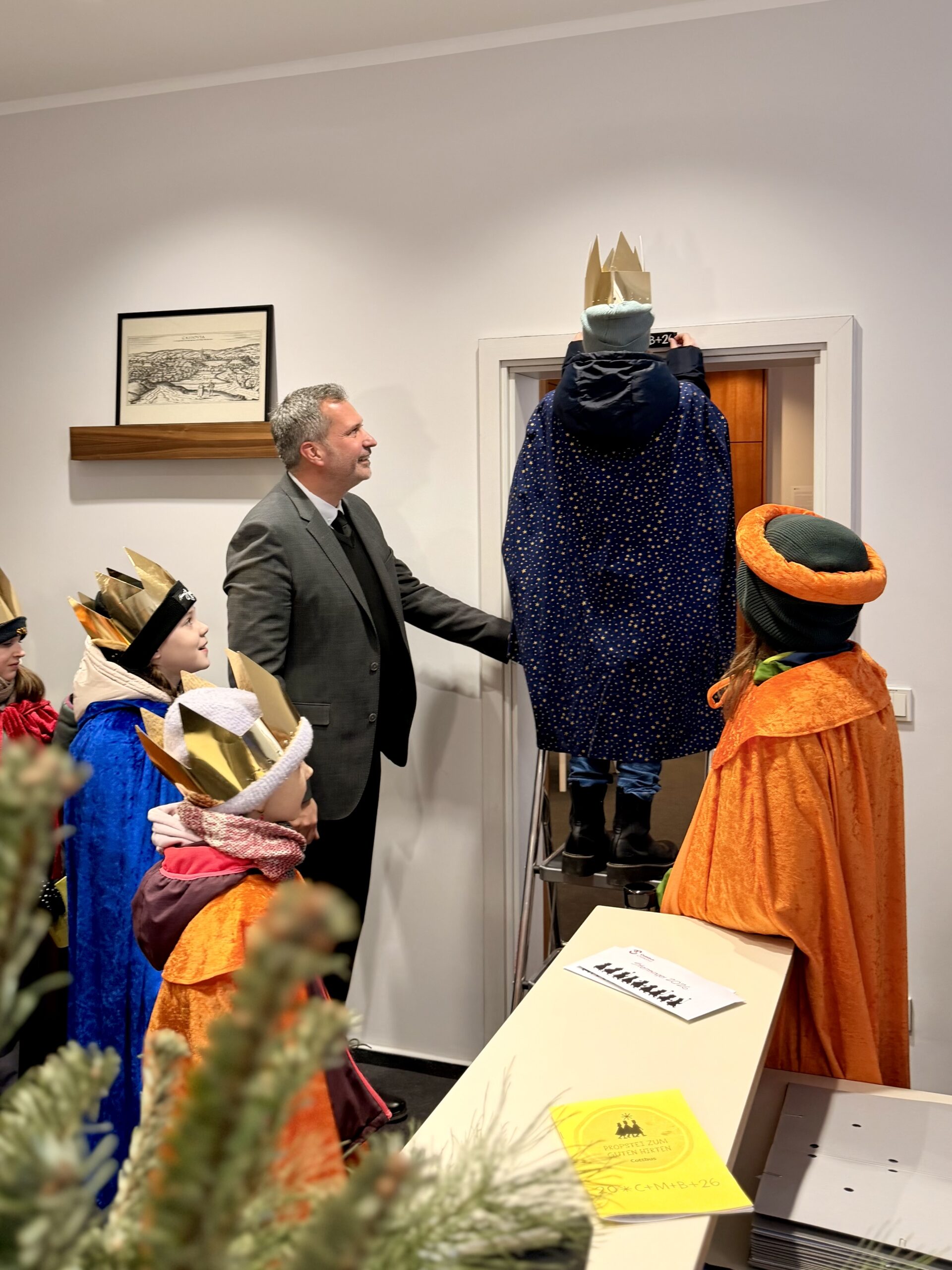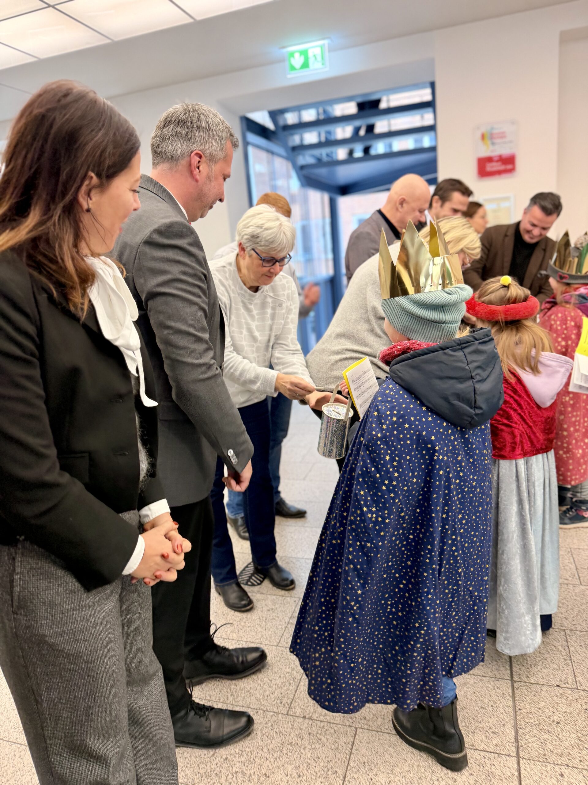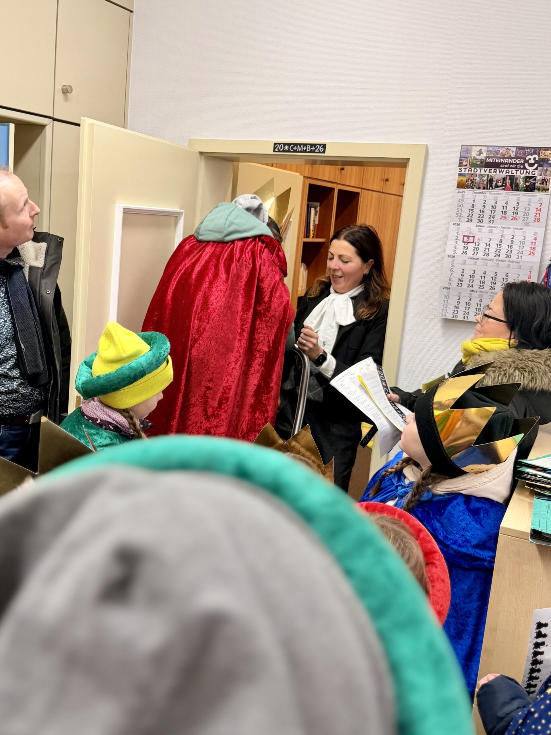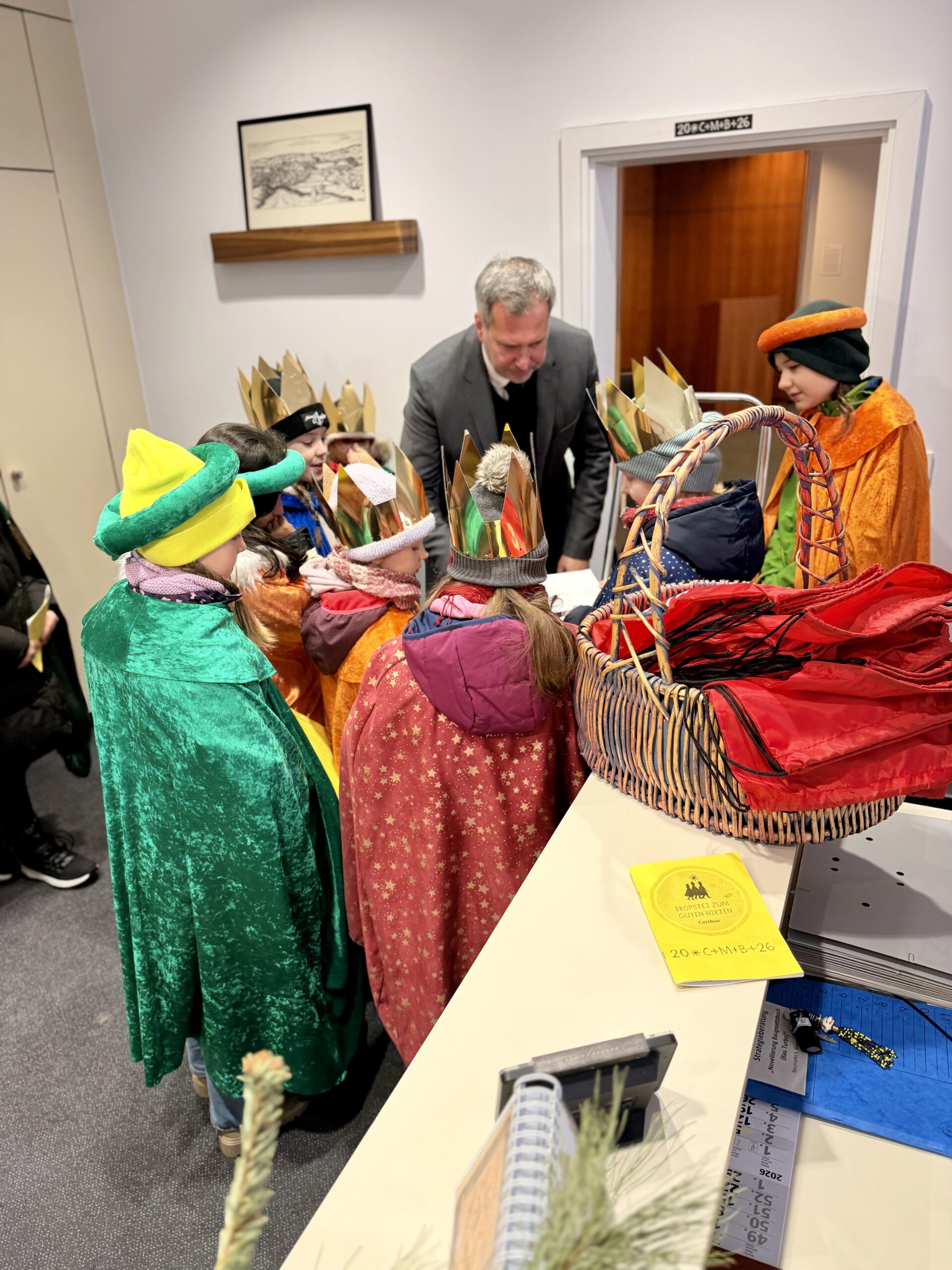 Am Dienstag, 06.01.2026, haben Kinder der Katholischen Pfarrei Cottbus traditionell das Rathaus besucht und den Segen für das neue Jahr überbracht. Sie wurden von Oberbürgermeister Tobias Schick und der Rathausspitze empfangen. Nicht nur das Rathaus selbst, sondern auch das Büro des Oberbürgermeisters, der Bürgermeisterin, der Beigeordneten und der Dezernenten wurden gesegnet. OB Schick überreichte den Kindern im Rahmen ihres Besuchs eine Spende die während der Stadtverordnetenversammlung im Dezember gesammelt wurde.