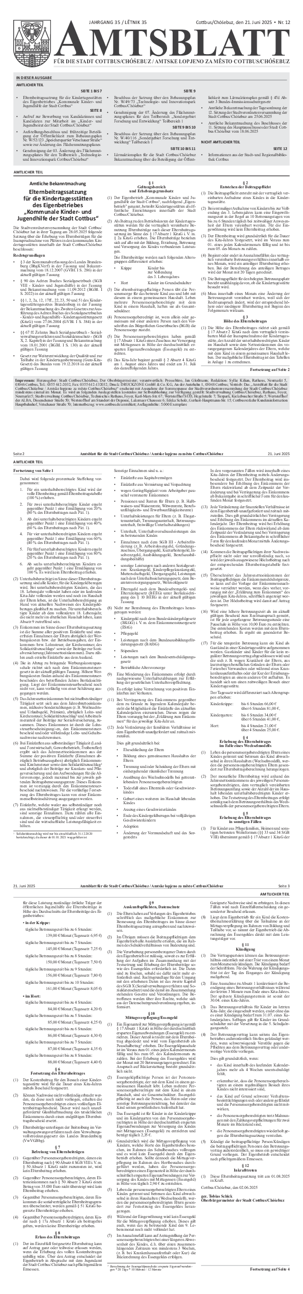 - Elternbeitragssatzung für die Kindertagesstätten des Eigenbetriebes „Kommunale Kinder- und Jugendhilfe der Stadt Cottbus“