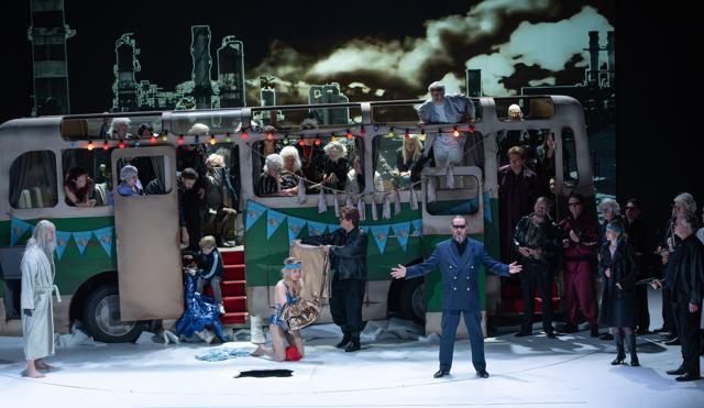 Der Regisseur Armin Petras verlegt das antike Drama in die sibirische Stadt Norilsk und erhebt damit einer der weltweit kältesten und schmutzigsten Städte zum Schauplatz. Als Gulag-Lager gegründet und in vollkommener Abgeschlossenheit zum Rest Russlands gelegen, spiegelt sie die Situation des Exils auf beklemmende Weise. Heute leben dort die Nachfahren von Inhaftierten und Wärtern in einer Gemeinschaft, was mit dem versöhnlichen Ende der Oper korrespondiert. Von den Strömen des Babels ins sibirische Eis: NABUCCO erzählt vom Leiden und Hoffen eines antiken Volkes und bewahrt zugleich seine Aktualität, weil die Sehnsucht nach Heimat und Hoffnung zeitlos ist.