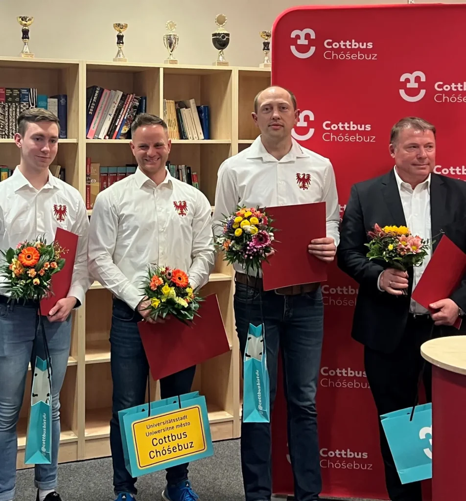 Für diese herausragenden Leistungen wird Maximilian Götzl mit der Eintragung in die Ehrenchronik der Stadt Cottbus/Chóśebuz geehrt.