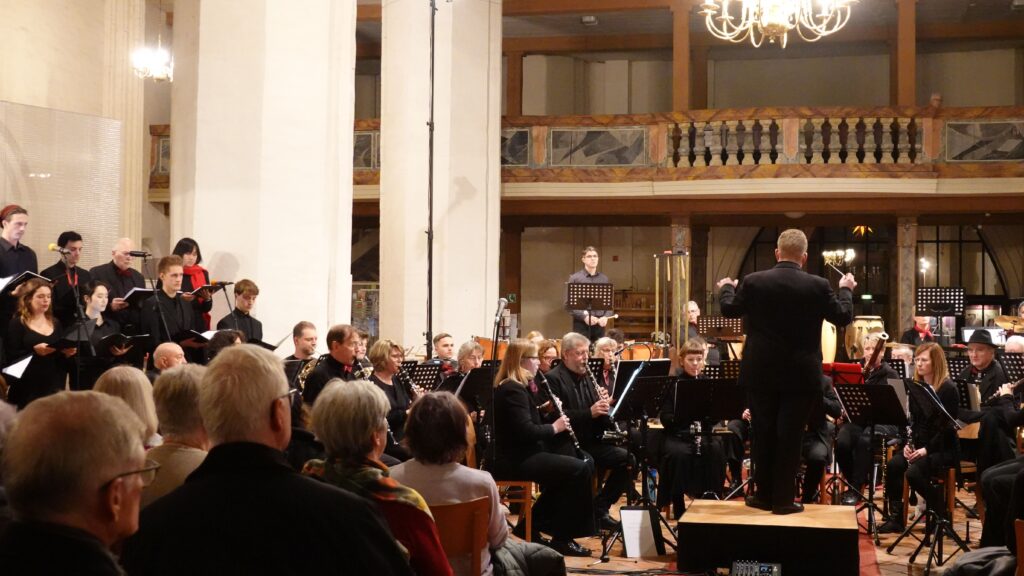 Im Rahmen des gemeinsamen Projektes führten das Blasorchester Cottbus und das Fachgebiet „Gesang“ der BTU Cottbus-Senftenberg am Sonntag, 30. November 2025 um 17 Uhr ein Adventskonzert in die Oberkirche St. Nikolai in Cottbus durch. Unter dem Motto „durchATMEN – Adventskonzert zur Stimme als Instrument des Jahres“ war unter anderem eine Fantasie über alte englische Weihnachtslieder für Chor und sinfonisches Blasorchester zu hören, aber auch Musik aus „Hänsel und Gretel“ sowie Arrangements bekannter Melodien von Karl Jenkins, Howard Shore und Émile Waldteufel. Die künstlerische Leitung übernahmen Markus Witzsche als Dirigent des Blasorchesters Cottbus und Frau Prof. Simone Schröder als Leiterin des Fachgebiets Gesang / Gesangsdidaktik der BTU Cottbus-Senftenberg. Das Konzert fand bei freiem Eintritt bzw. auf Spendenbasis statt und war für alle Interessierten öffentlich zugänglich.