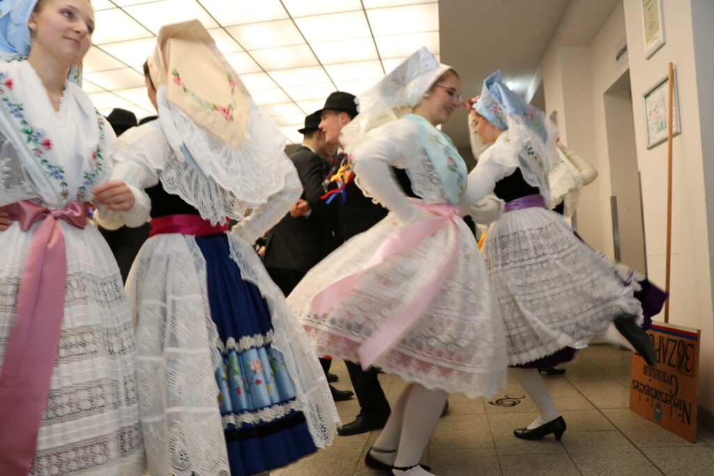 Als Dankeschön wird die Hausfrau zu einem Tänzchen aufgefordert und dem Herrn ein „paleńc“, ein Schnäpschen angeboten.
