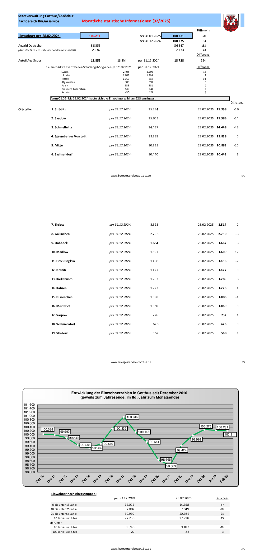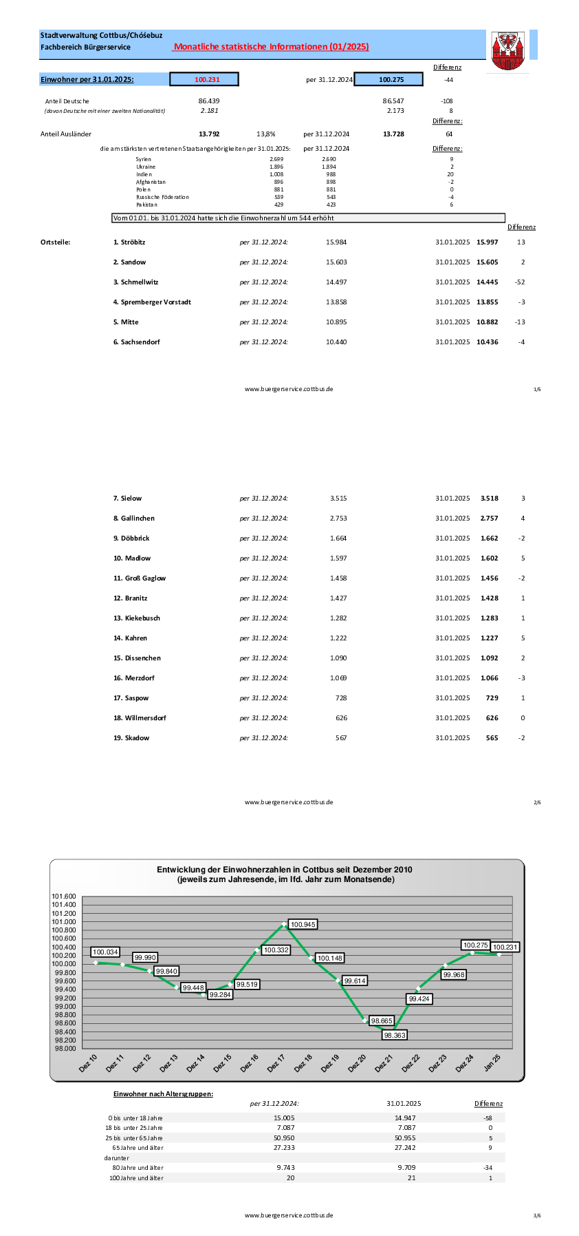 - Statistische Veröffentlichungen der Stadt Cottbus
