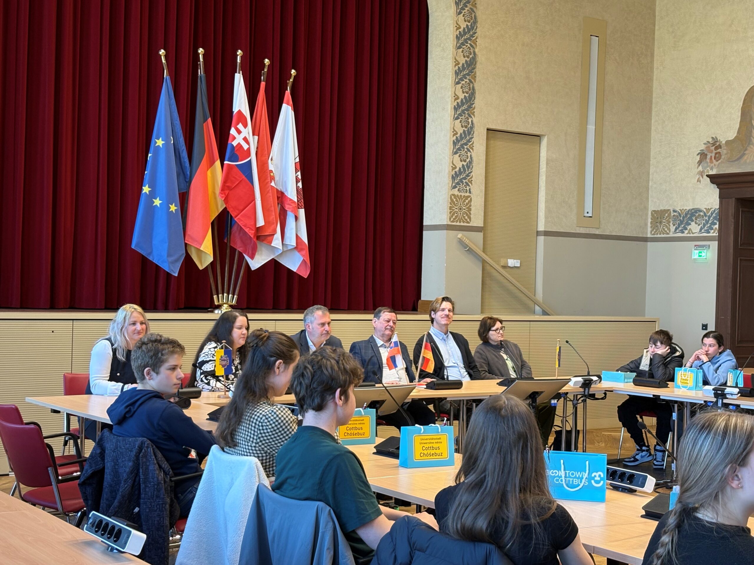 Schülerinnen, Schüler und Lehrkräfte aus Košice waren in den zurückliegenden Tagen zu Gast in Cottbus/Chóśebuz. Der Besuch aus der Partnerstadt umfasste gemeinsamen Unterricht, Begegnungen in Gastfamilien sowie Aktivitäten zum gegenseitigen Kennenlernen.