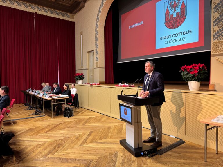 Auf dieser Seite finden Sie die Berichte des Oberbürgermeisters Tobias Schick vor der Stadtverordnetenversammlung von Cottbus/Chóśebuz. Die Reden enthalten Informationen zu aktuellen Entwicklungen, politischen Entscheidungen und Zukunftsplänen der Stadt. Themen wie Stadtentwicklung, Infrastruktur, Wirtschaft und Kultur stehen dabei im Mittelpunkt.