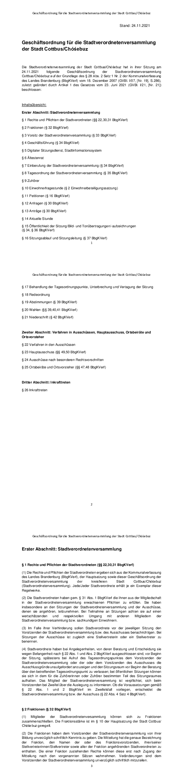 Geschäftsordnung für die Stadtverordnetenversammlung der Stadt Cottbus Chóśebuz