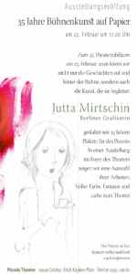 Ausstellungseröffnung - Begegnungen – Ausstellung 35 Jahre Bühnenkunst auf Papier – Plakate, Malerei, Illustration und Grafik von Jutta Mirtschin