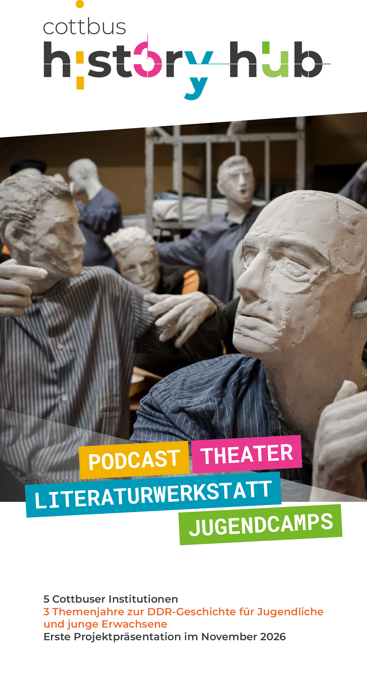 In Kooperation mit dem Jugendkulturzentrum GLADHOUSE, dem Theaterwerk Romy Fröhlich & Maria Schneider, der Caritas mit ihrem Projekt youngcaritas und den Städtischen Sammlungen Cottbus hat das Menschenrechtszentrum das Projekt Cottbus History Hub ins Leben gerufen.