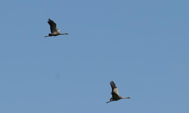 Im Herbst lassen sich Gänse und Kraniche besonders dann gut beobachten, wenn Sie ihre Schlafplätze anfliegen. Dann wird die Stille im Naturparadies Grünhaus vom Schnattern der Gänse und dem Trompeten der Kraniche unterbrochen.