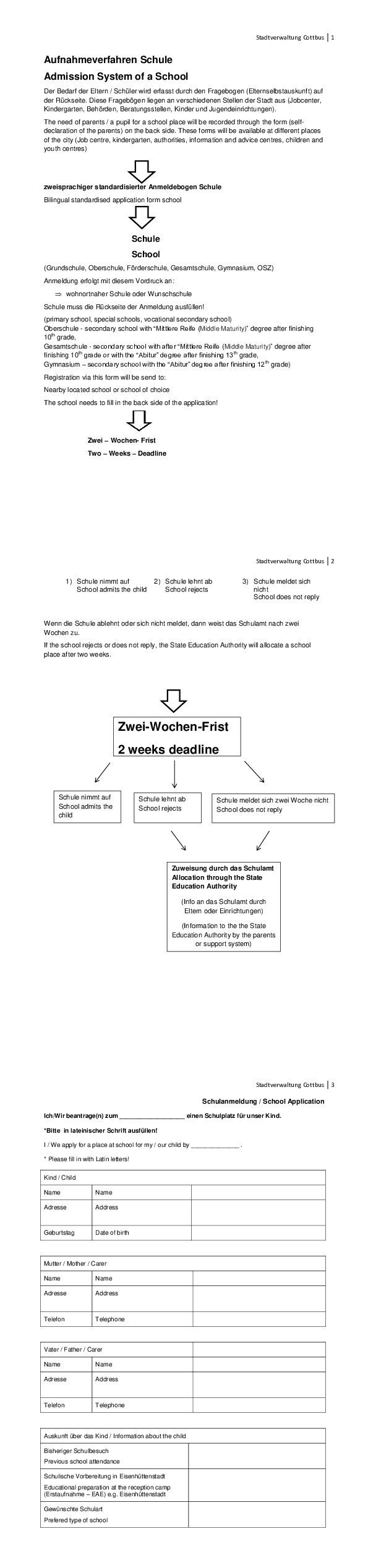 Der Bedarf der Eltern/Schüler wird durch den hier zur Verfügung gestellten Fragebogen (Elternselbstauskunft) erfasst und die Schulaufnahme für Geflüchtete beantragt.