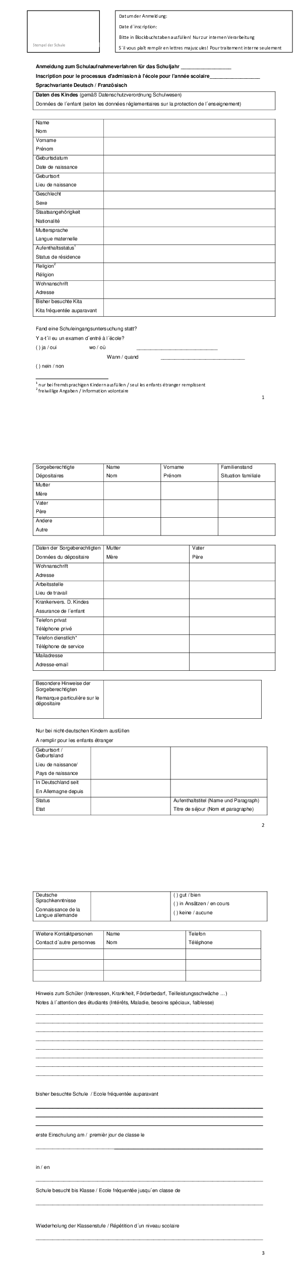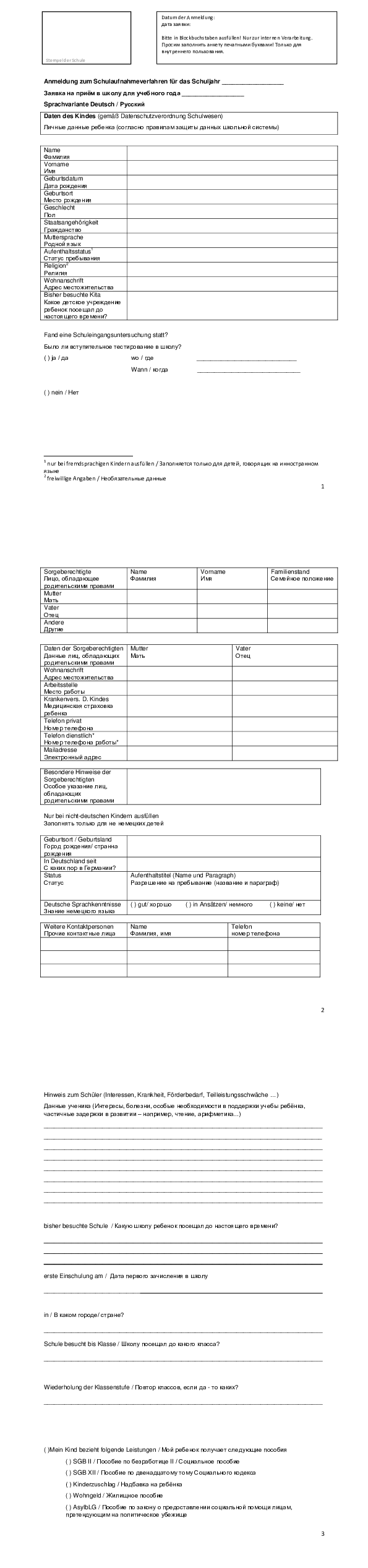 Mit diesem Formular erfolgt die Anmeldung eines geflüchteten Kindes oder Jugendlichen an einer konkreten Schule.