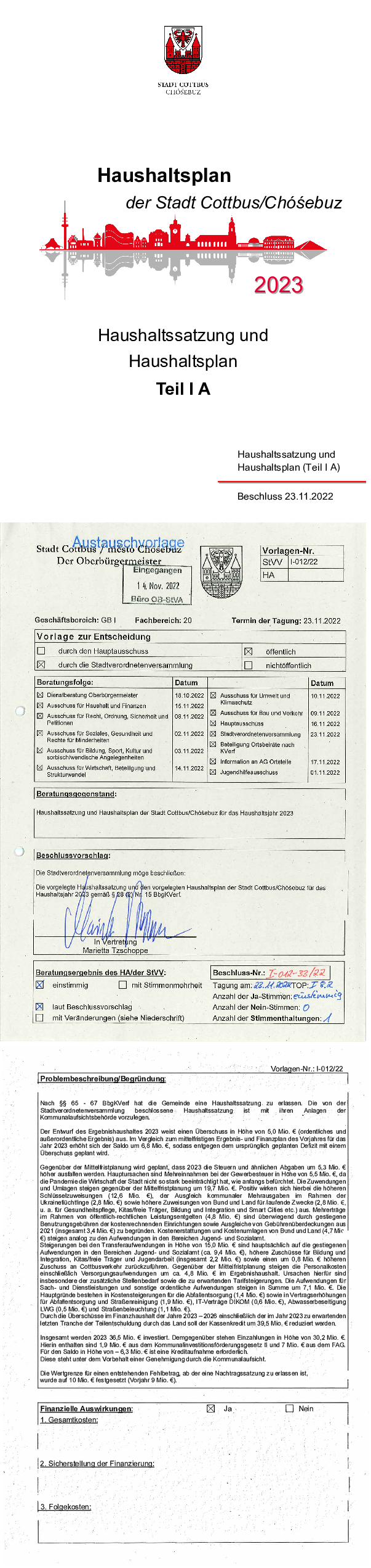Nachtragshaushaltsplan der Stadt Cottbus Chóśebuz für das Jahr 2023, Teil IA
