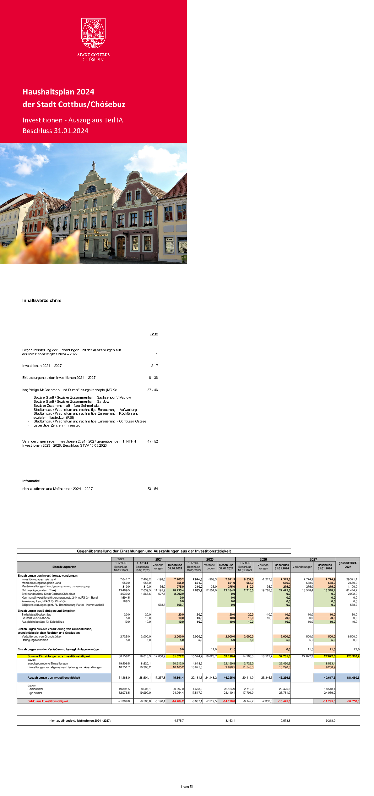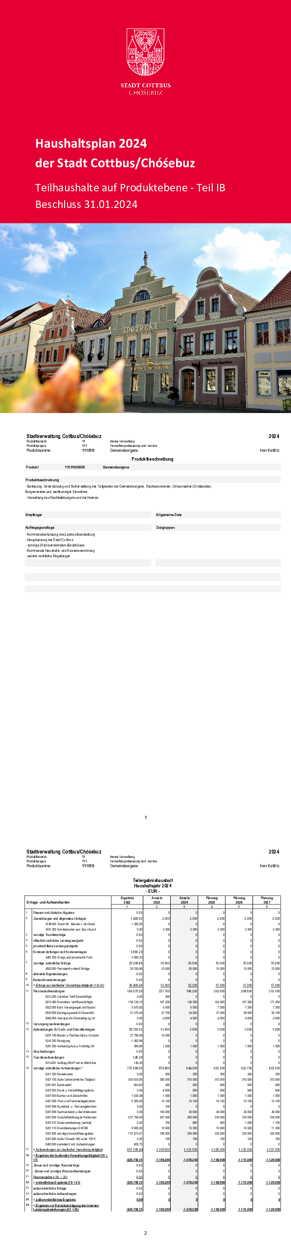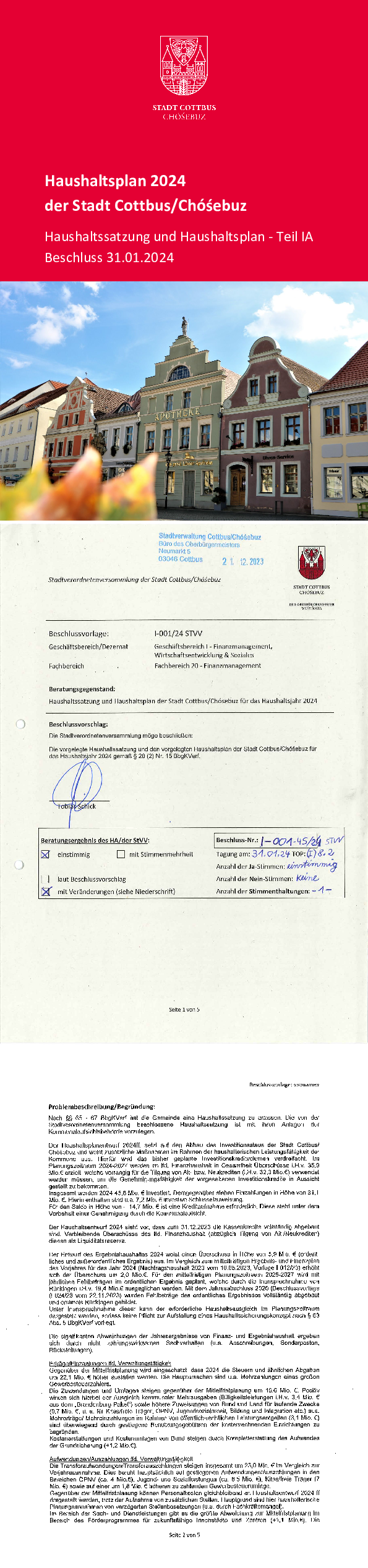 Haushalt der Stadt Cottbus/Chóśebuz für das Jahr 2024