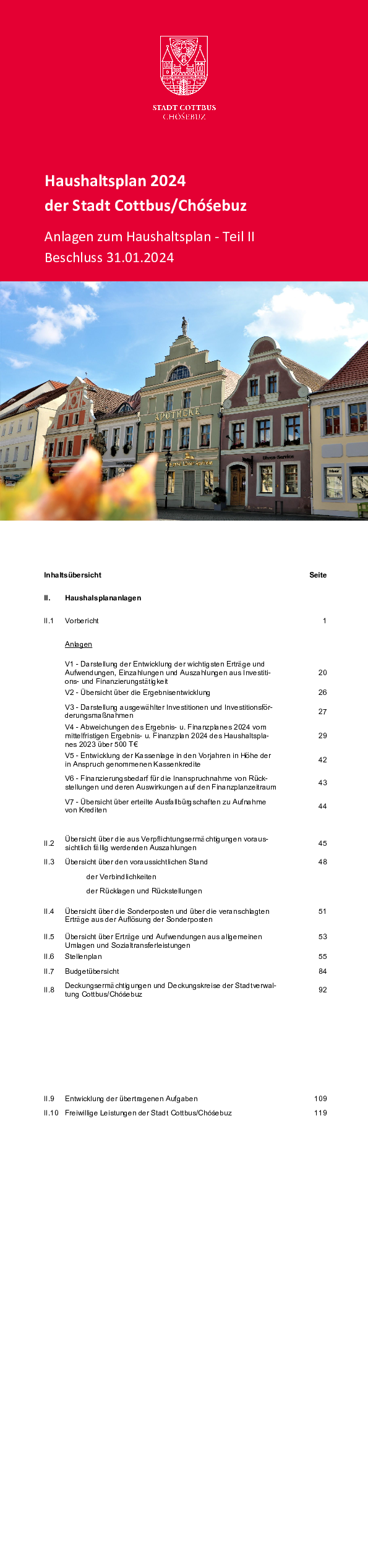 Haushaltssatzung und Haushaltsplan der Stadt Cottbus für das Haushaltsjahr 2024