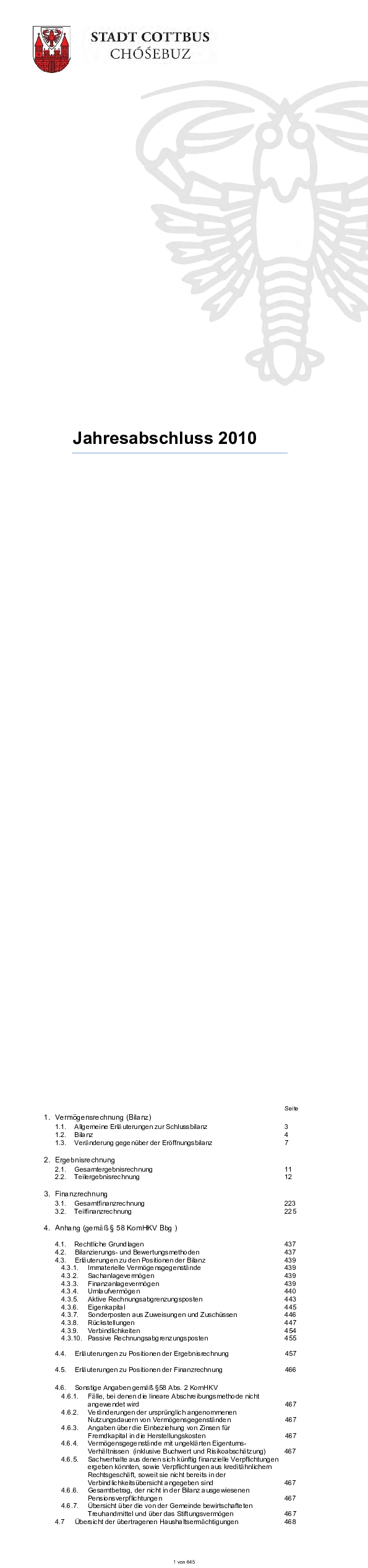 „Beschluss über den Jahresabschluss 2010“ der Stadtverordnetenversammlung Cottbus vom 30.04.2014