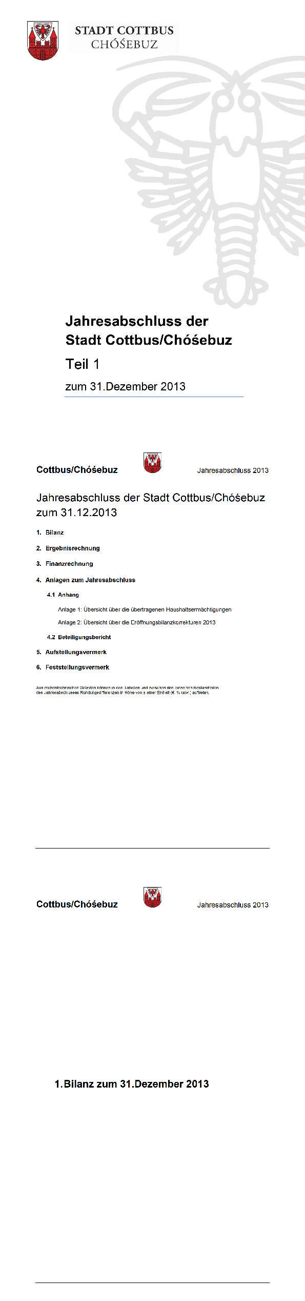 „Beschluss über den Jahresabschluss 2013“ der Stadtverordnetenversammlung Cottbus vom 26.02.2020
