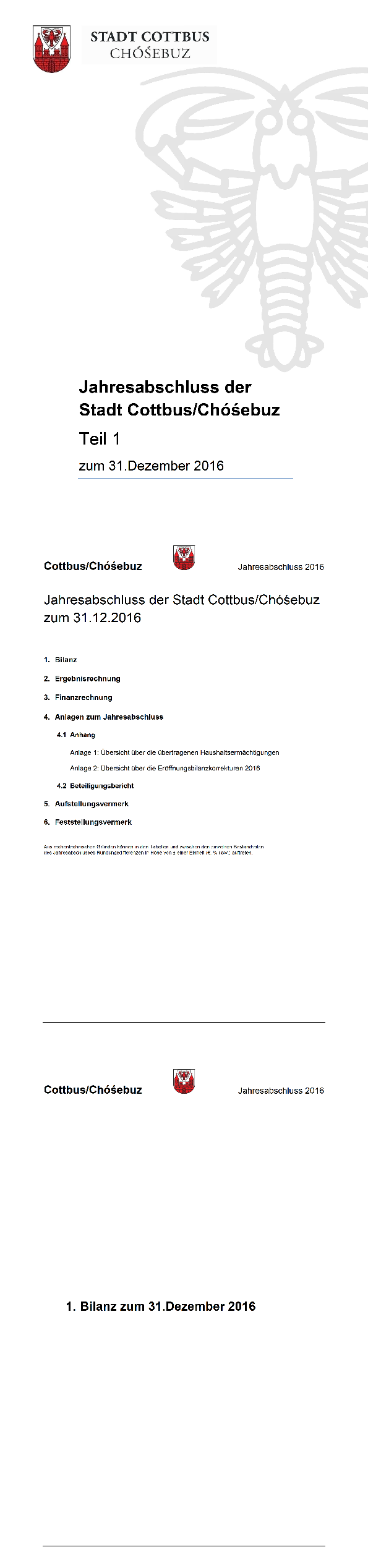 „Beschluss über den Jahresabschluss 2016“ der Stadtverordnetenversammlung Cottbus vom 26.02.2020
