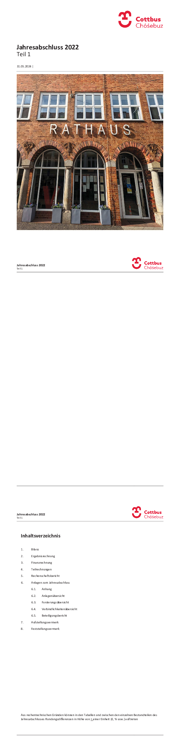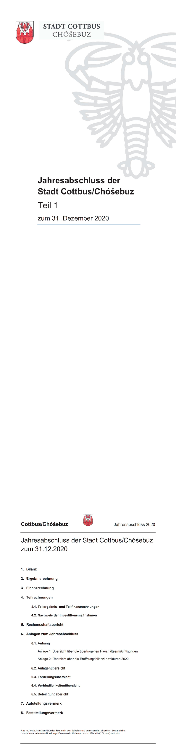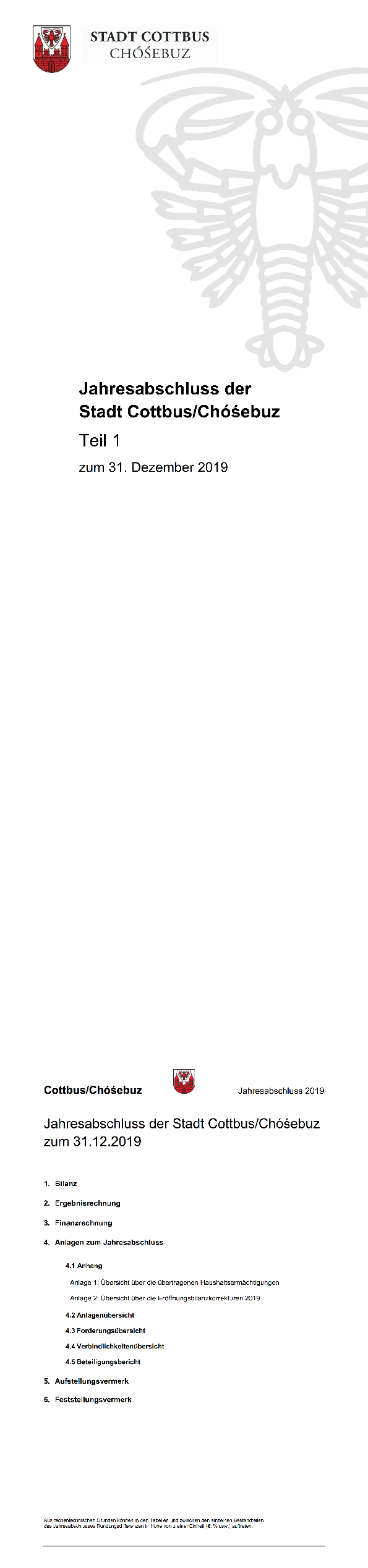 Entsprechend der § 80 Abs. 1. der Kommunalverfassung Brandenburg (BbgKVerf) hat die Gemeinde für den Schluss eines Haushaltsjahres einen Jahresabschluss aufzustellen.