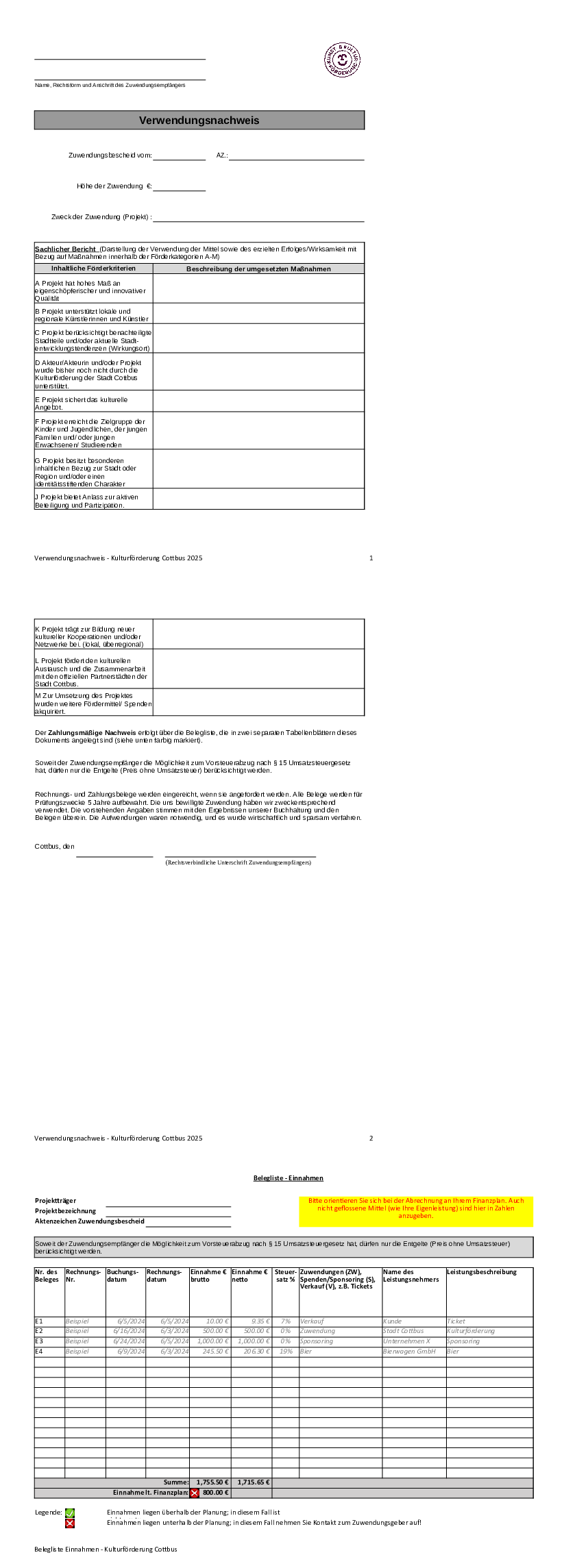 Die folgenden Dokumente sind für Öffentlichkeitsarbeit und Fördermittel-Abrechnung ab 2025 notwendig: