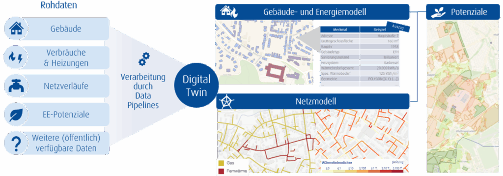 Zu Beginn sieht das Gesetz optional eine Eignungsprüfung der einzelnen Teilgebiete des Planungsgebietes für mögliche Wärmenetze vor, um frühzeitig Gebiete für die Versorgung über Wärmenetze auszuschließen. Aufgrund eines einheitlichen und digitalen Analyseansatzes hat sich das Projektteam dazu entschieden, das gesamte Stadtgebiet einheitlich zu betrachten und nicht bereits im Vorhinein Teilgebiete für Wärmenetze auszuschließen.