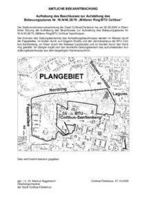 Aufhebung des Beschlusses zur Aufstellung des Bebauungsplanes „Mittlerer Ring/BTU Cottbus“21.10.2020