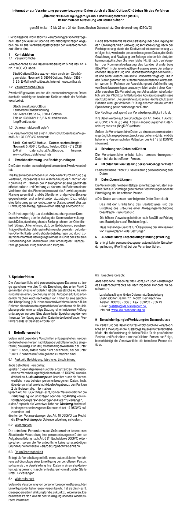 In Cottbus/Chóśebuz ist das förmliche Verfahren zur Neuaufstellung des FNP mit dem Aufstellungsbeschluss (Beschluss-Nr. IV-068-23/10) am 24.11.2010 gemäß § 2 Abs. 1 BauGB eingeleitet worden. Das Erfordernis der Neuaufstellung des FNP war u.a. aus folgenden Gründen gegeben: