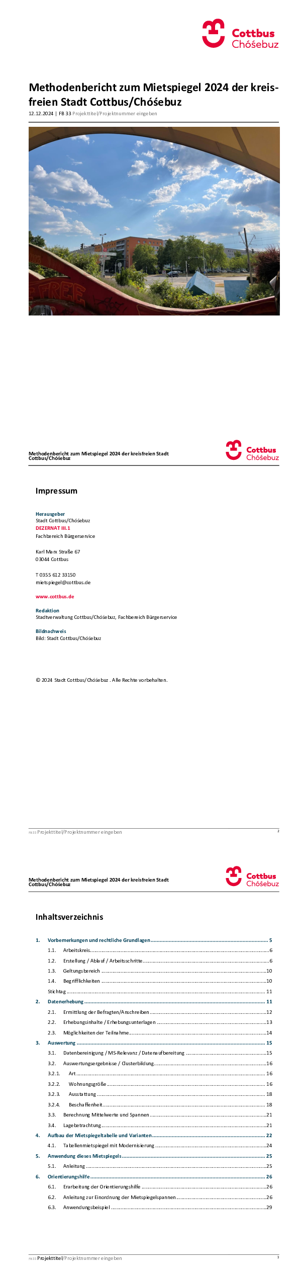 Der Cottbuser Mietspiegel 2024 wurde als qualifizierter Mietspiegel gemäß § 558d BGB nach anerkannten wissenschaftlichen Grundsätzen neu erstellt.