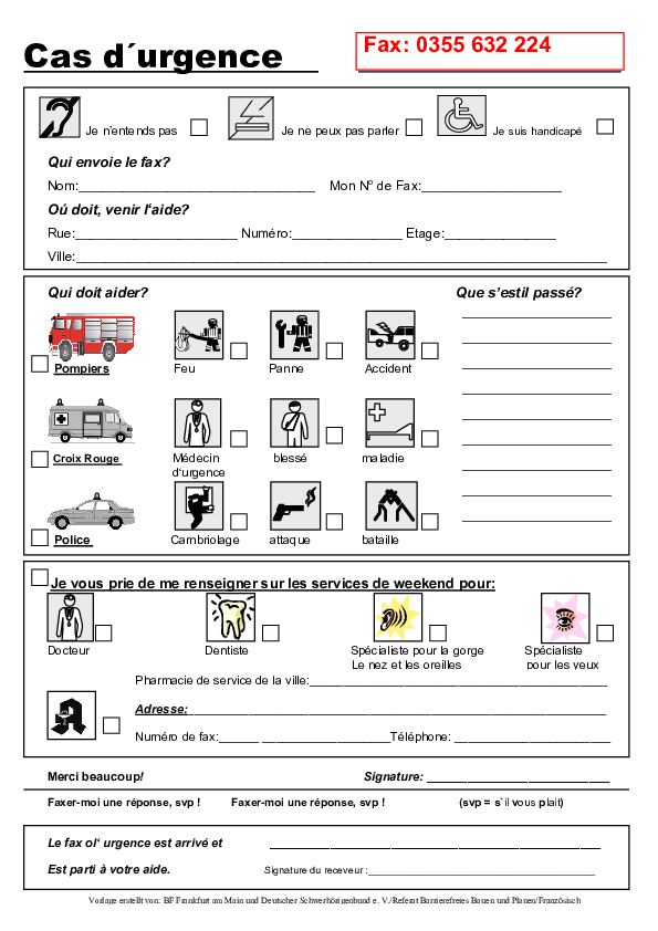 Notfall-Telefaxe in 10 verschiedenen Sprachen (Emergency Fax in 10 different languages)