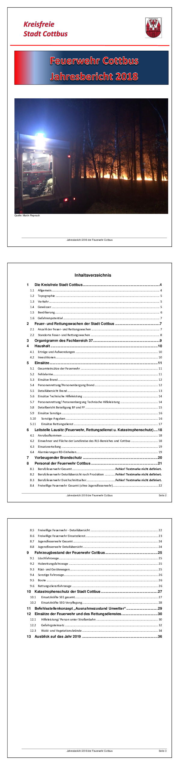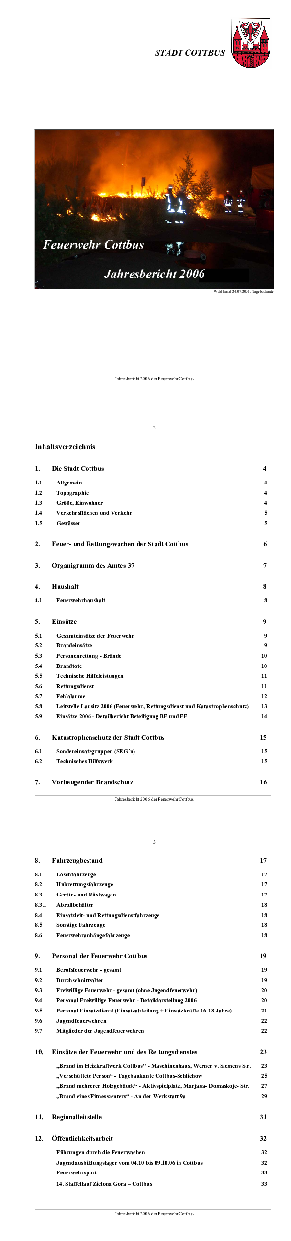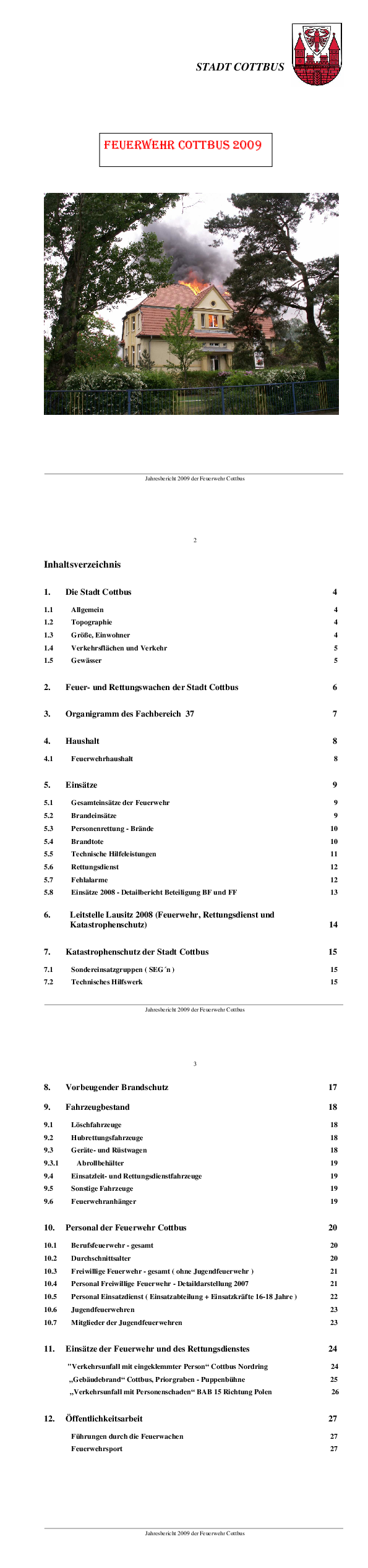 Wir stellen Ihnen hier aktuelle Dokumente zum Download zur Verfügung, die Sie über die Arbeit der Berufs- und der freiwilligen Feuerwehren Cottbus informieren: