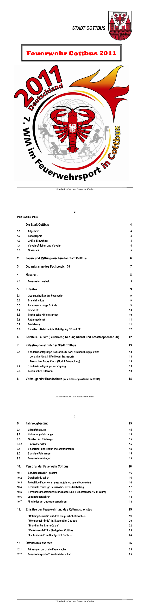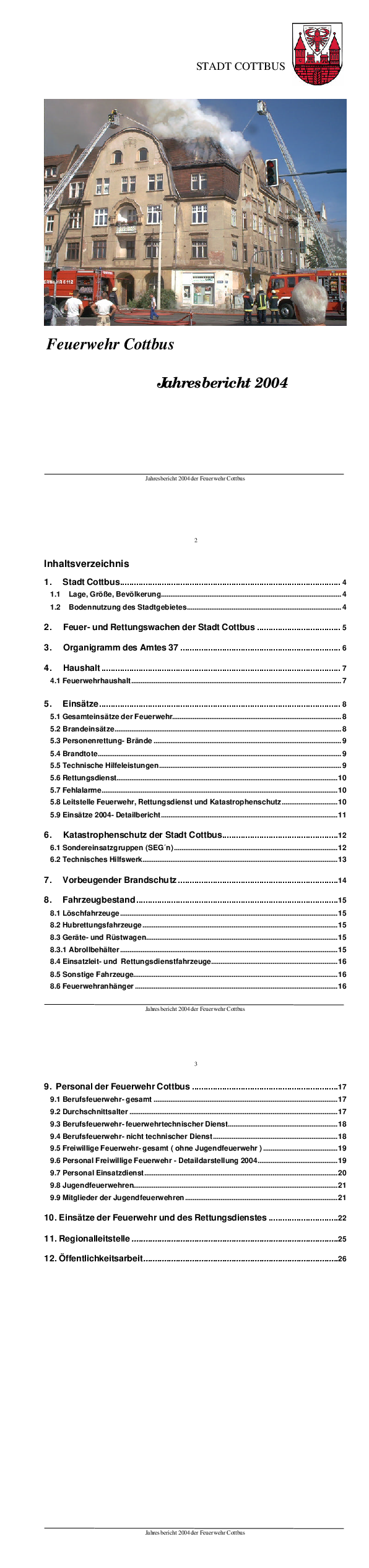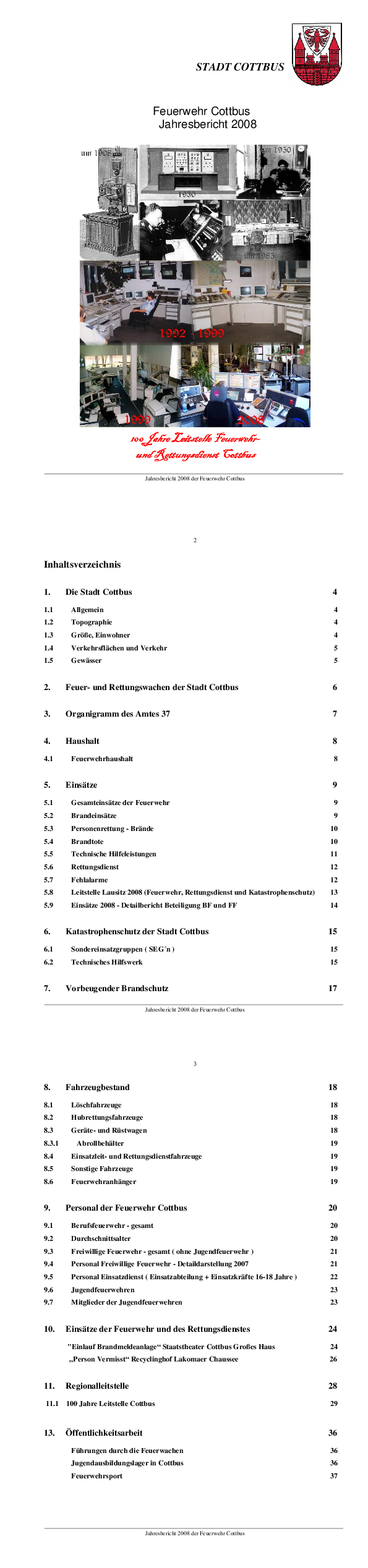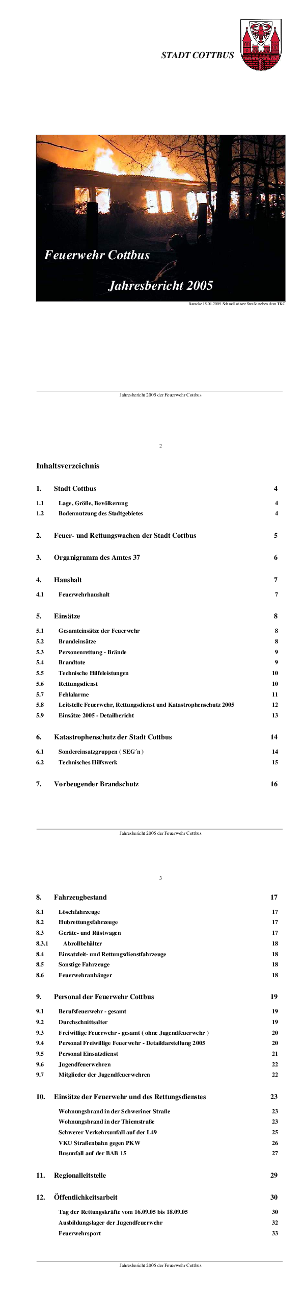 Wir stellen Ihnen hier aktuelle Dokumente zum Download zur Verfügung, die Sie über die Arbeit der Berufs- und der freiwilligen Feuerwehren Cottbus informieren: