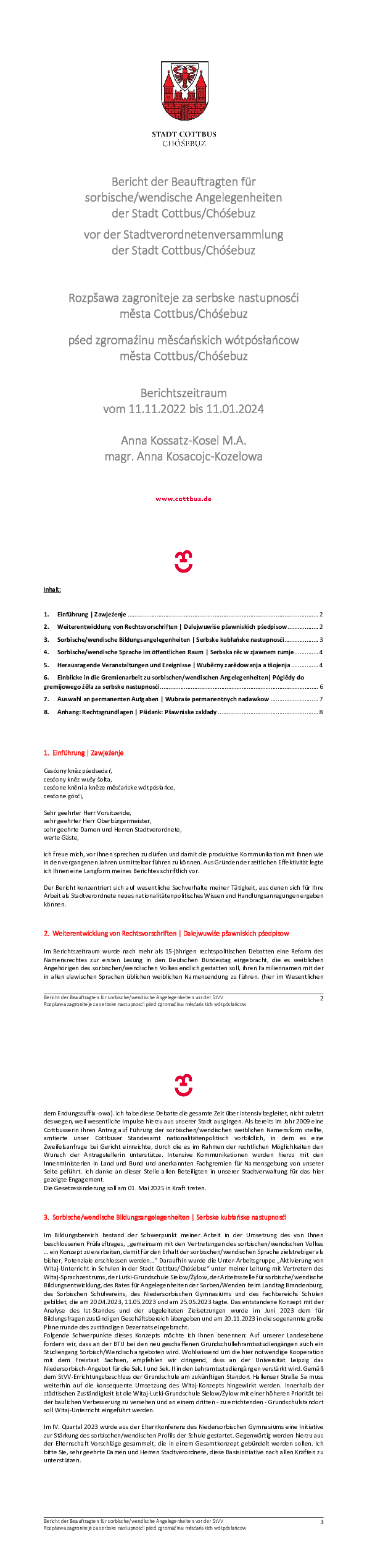 - Bürger- und Bürgerinnenberatung in sorbischen/wendischen Angelegenheiten