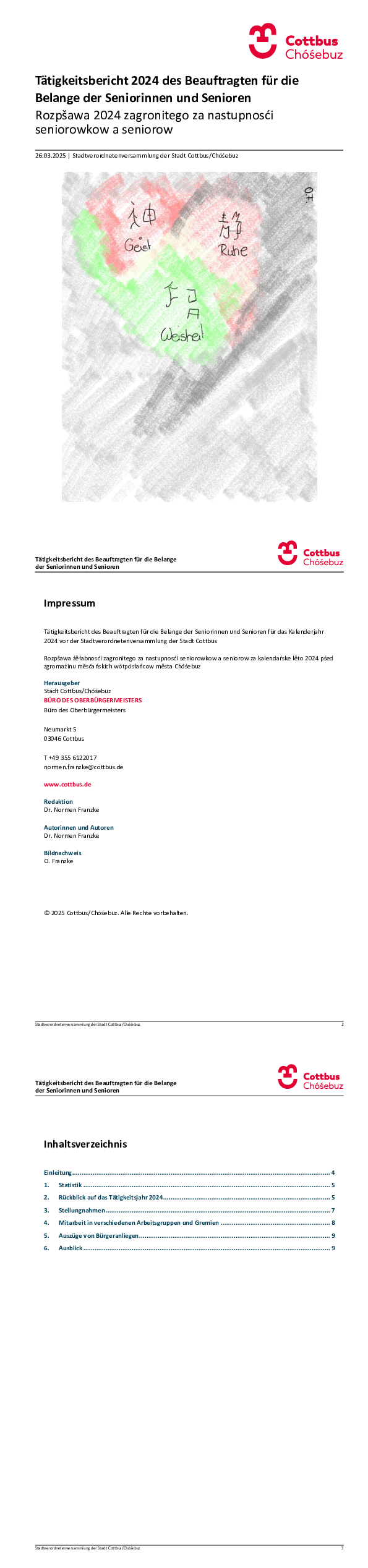 - Unterstützung des Seniorenbeirates der Stadt Cottbus bei der Wahrnehmung der Interessen der Seniorinnen und der Senioren in der Stadt Cottbus