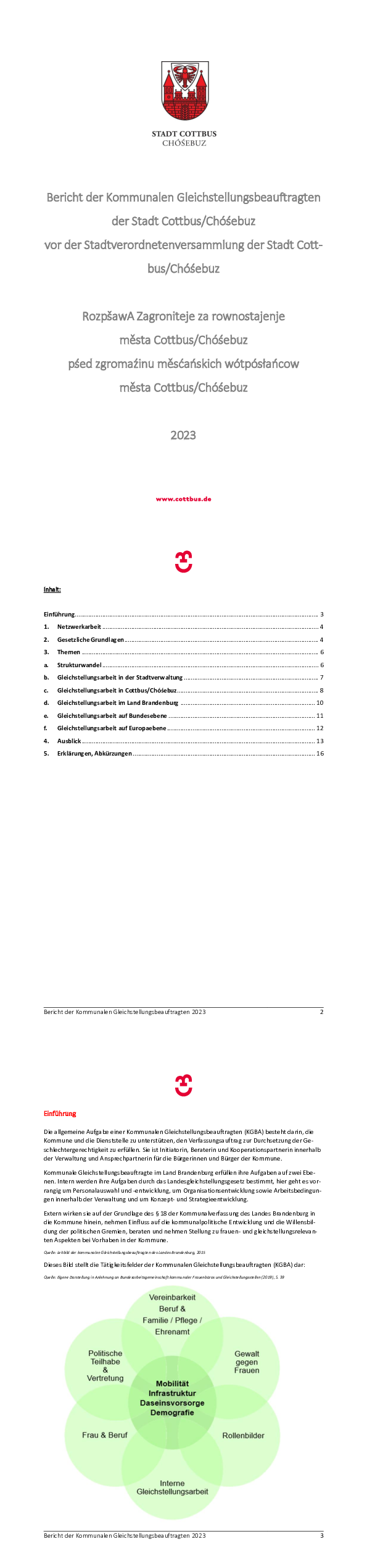 Die Gleichstellungsbeauftragte berichtet einmal im Jahr vor der Stadtverordnetenversammlung über ihre Arbeit. Dabei gibt sie einen Überblick über die wichtigsten Projekte und Maßnahmen, die sie im vergangenen Jahr umgesetzt hat, um die Gleichstellung in der Stadt zu fördern.