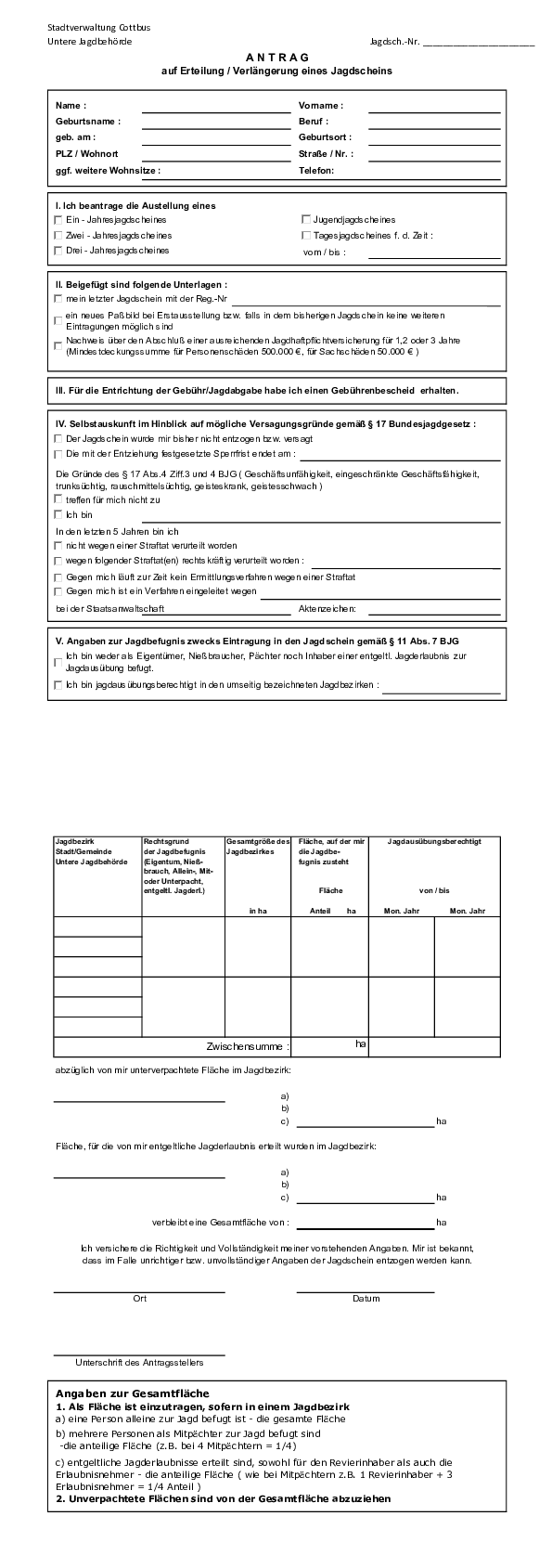 Antrag auf Erteilung oder Verlängerung eines Jagdscheins