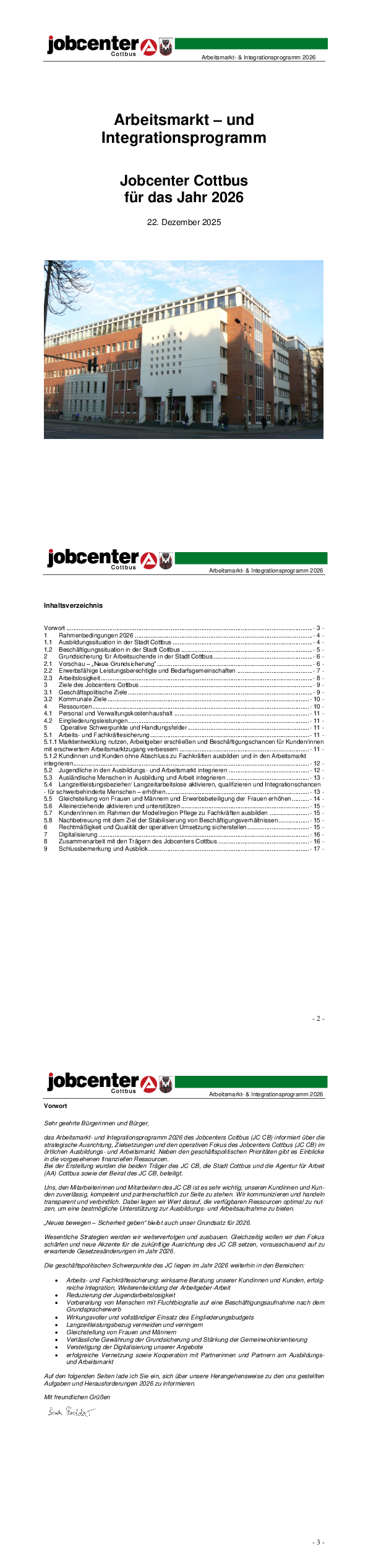 Arbeitsmarkt- und Integrationsprogramm Jobcenter Cottbus für das Jahr 2026